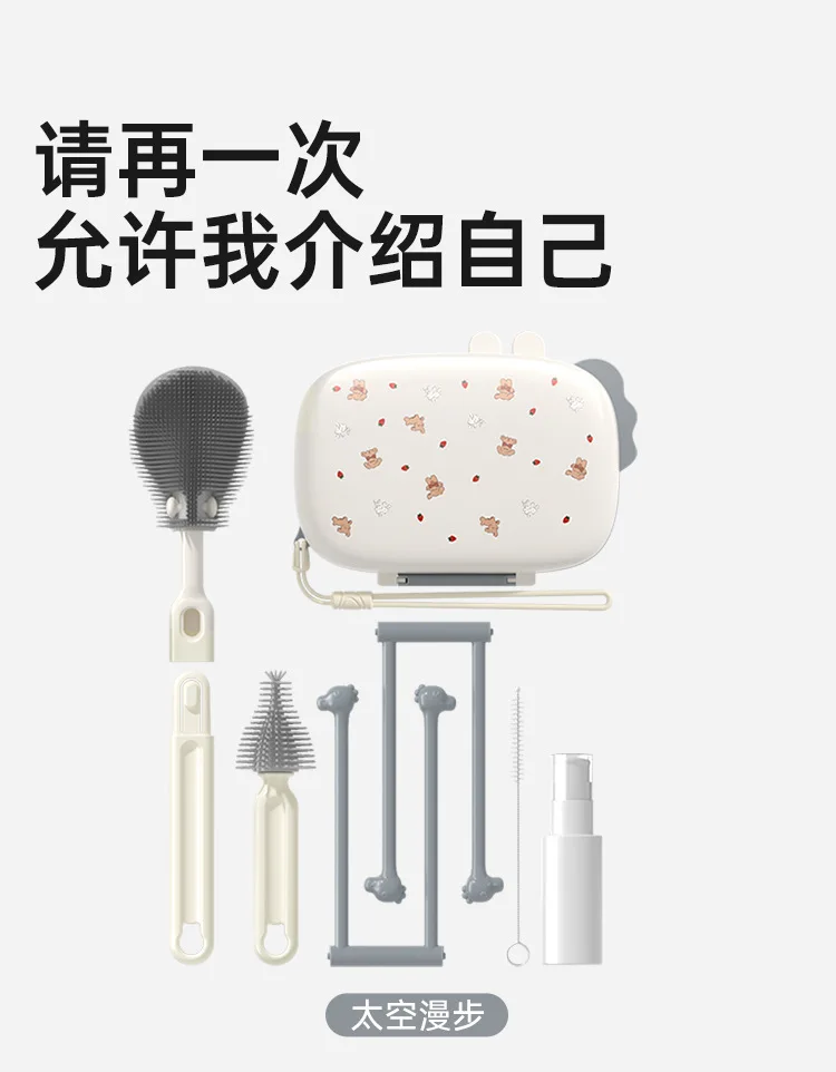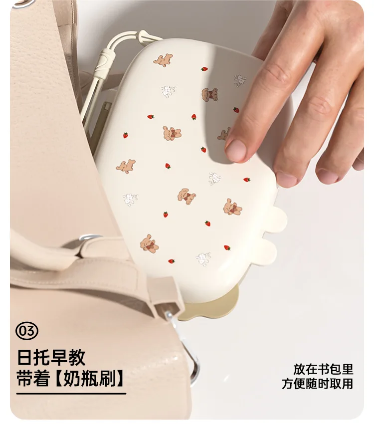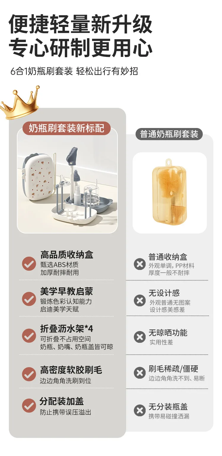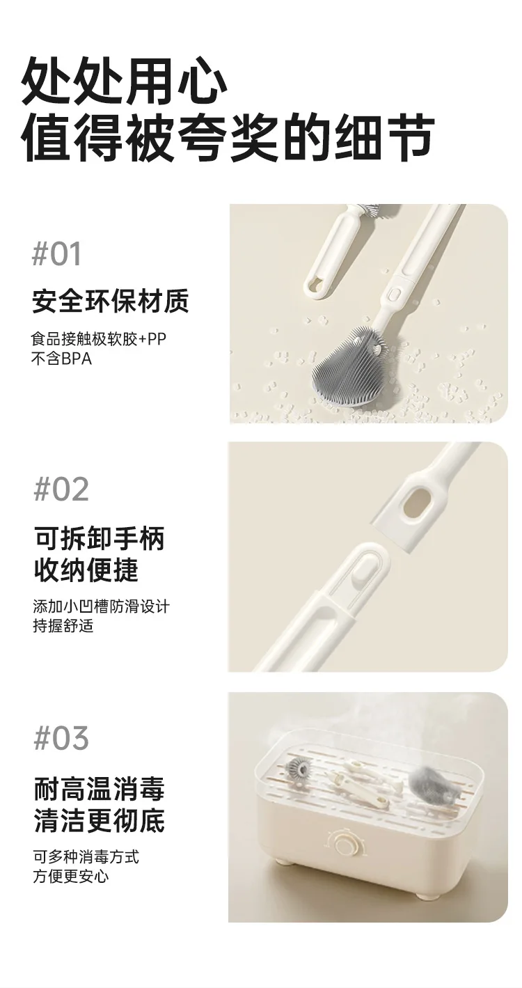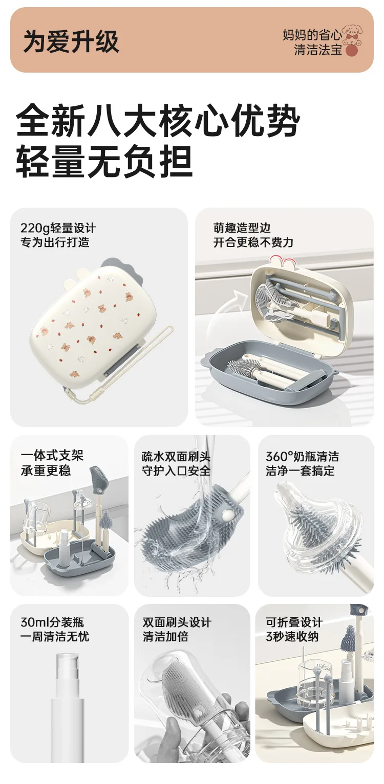 Juego de cepillos de limpieza de biberones portátil, caja de almacenamiento de viaje con cepillo de doble cara, 360 ° Diseño de limpieza, ligero y fácil de usar
