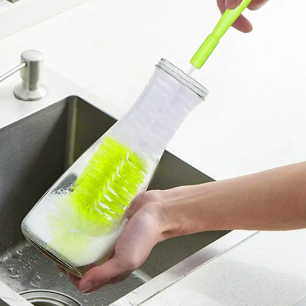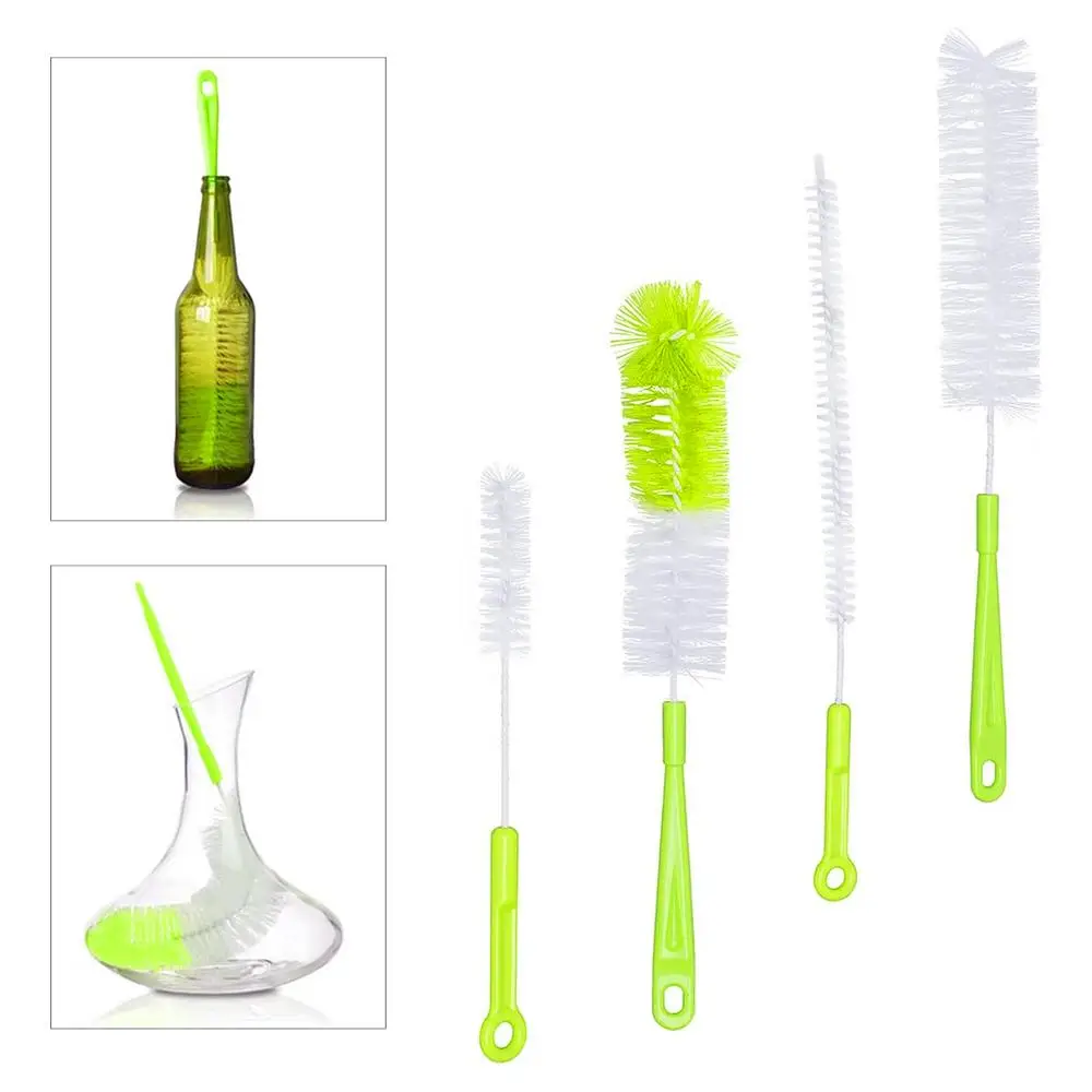 2. Limpieza versátil: Haga que la limpieza diaria de la cocina sea fácil con nuestro Juego de cepillos de limpieza de botellas multifuncionales que viene con 4 cepillos de Mango Verde. El juego es perfecto para limpiar eficientemente botellas, pajitas, frascos, teteras y otros artículos para el hogar de varios tamaños. Diga adiós a los líos obstinados sin esfuerzo.