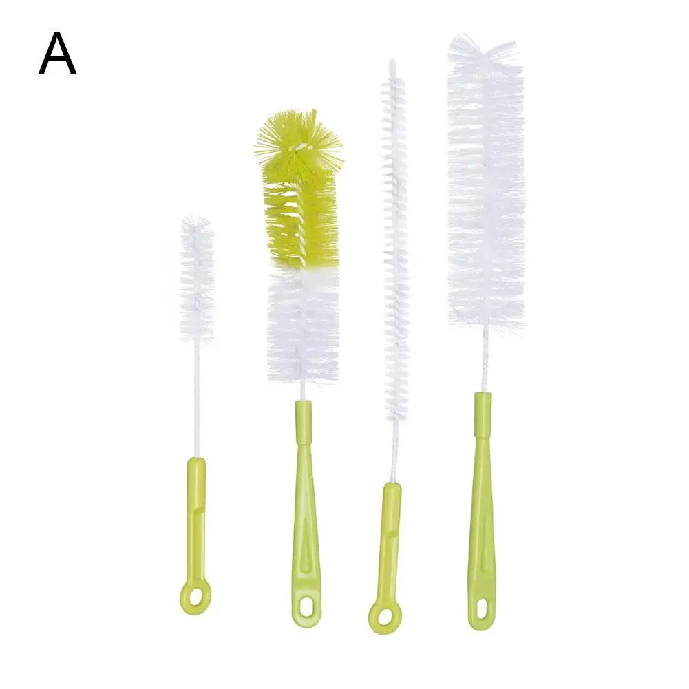 Comprar Juego de cepillos de limpieza de mango largo para biberones de bebé, herramienta de limpieza de tubos de vidrio, lavado de Bong, botella de agua deportiva, 4 piezas