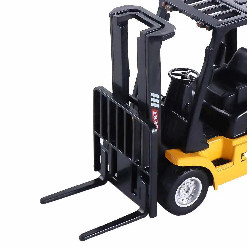 Modelo de carretilla elevadora realista: modelo de carretilla elevadora realista con carga de simulación y paleta y elevación móviles, volante desmontable, motor de inercia impulsado con carrocería de aleación anticolisión, gran restauración del camión real, combinado con buena apariencia y colección.