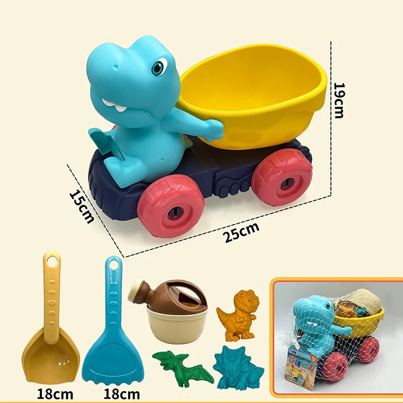 Juego de coches de juguete de playa para niños, pala, excavación de arena, juego de playa al aire libre, juego de camión volquete de dinosaurio, 7 Uds.