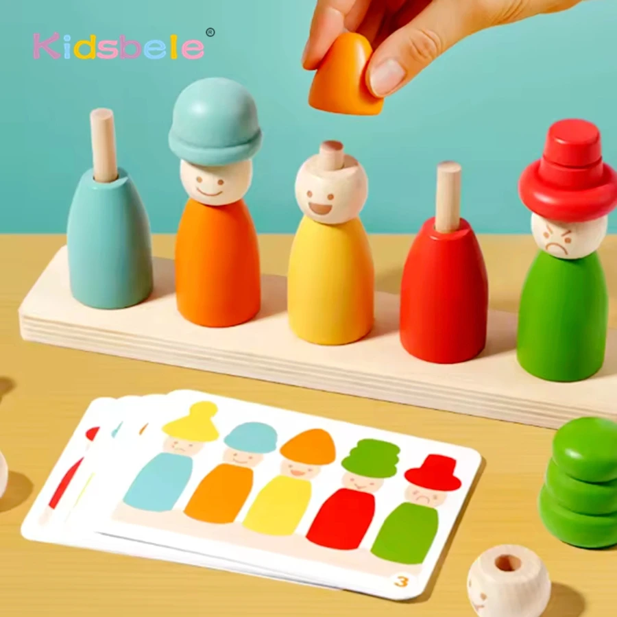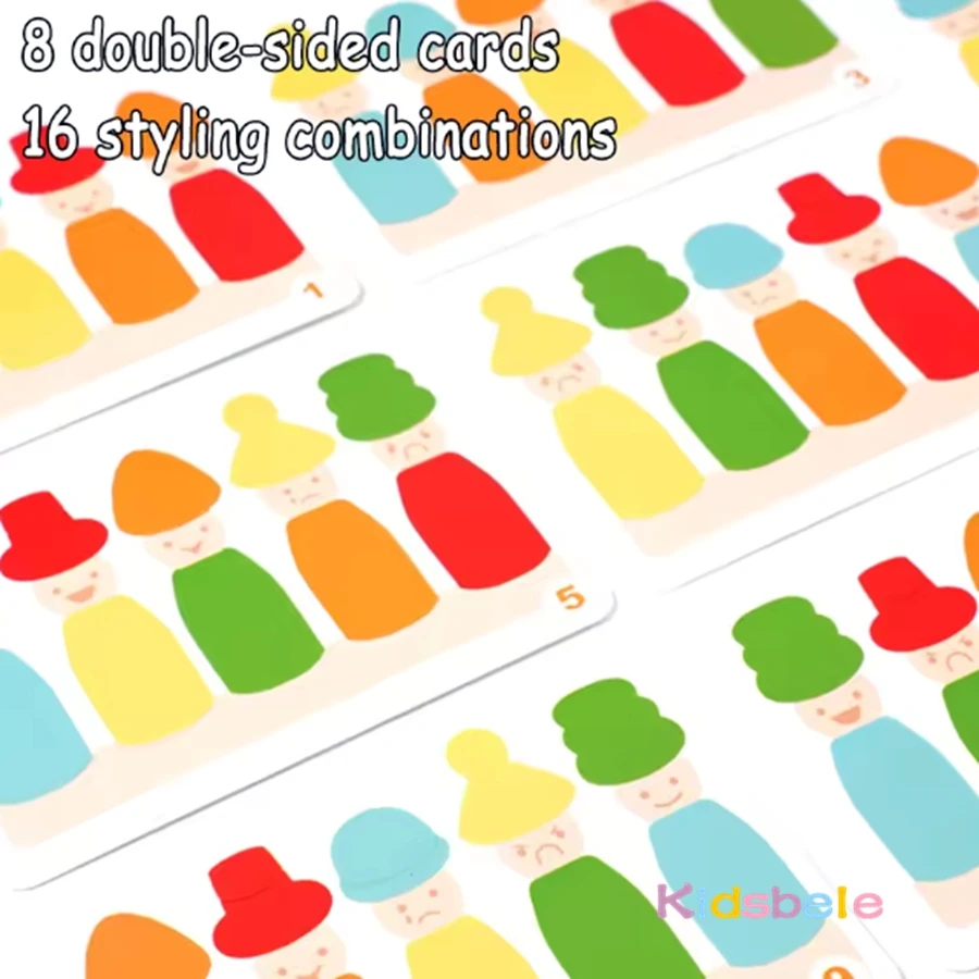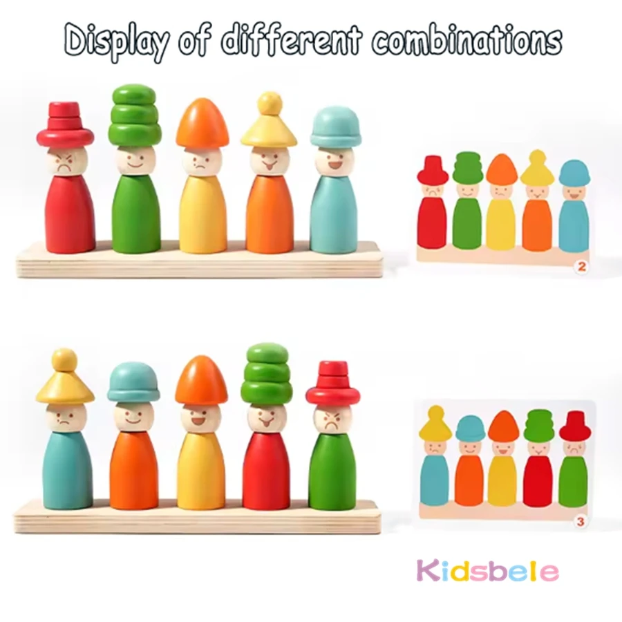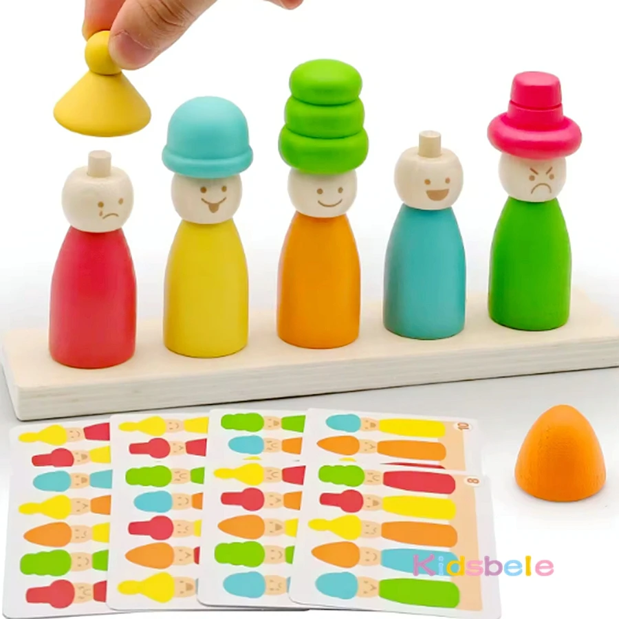 Juego de combinación de colores con forma de marioneta de madera, juguete de aprendizaje Montessori, sombrero de marioneta, combinación de cara, juguete de escritorio apilable creativo para niños pequeños