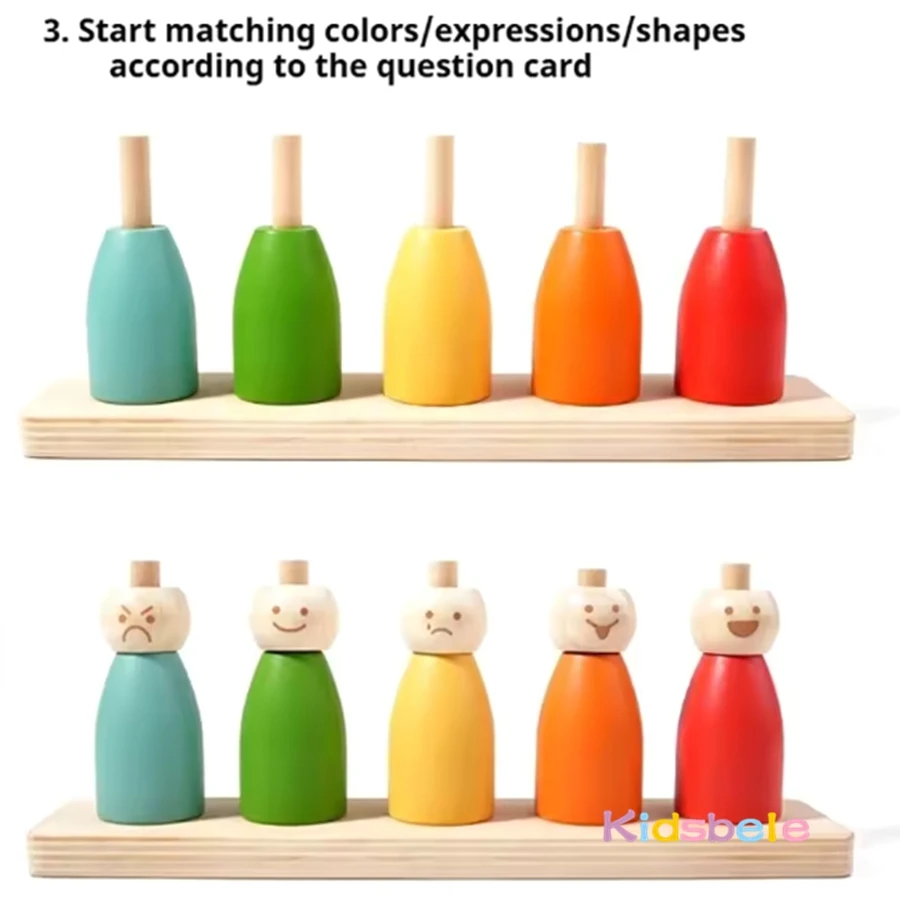 Juego de combinación de colores con forma de marioneta de madera, juguete de aprendizaje Montessori, sombrero de marioneta, partido de cara, juguete de escritorio apilable creativo para niños pequeños