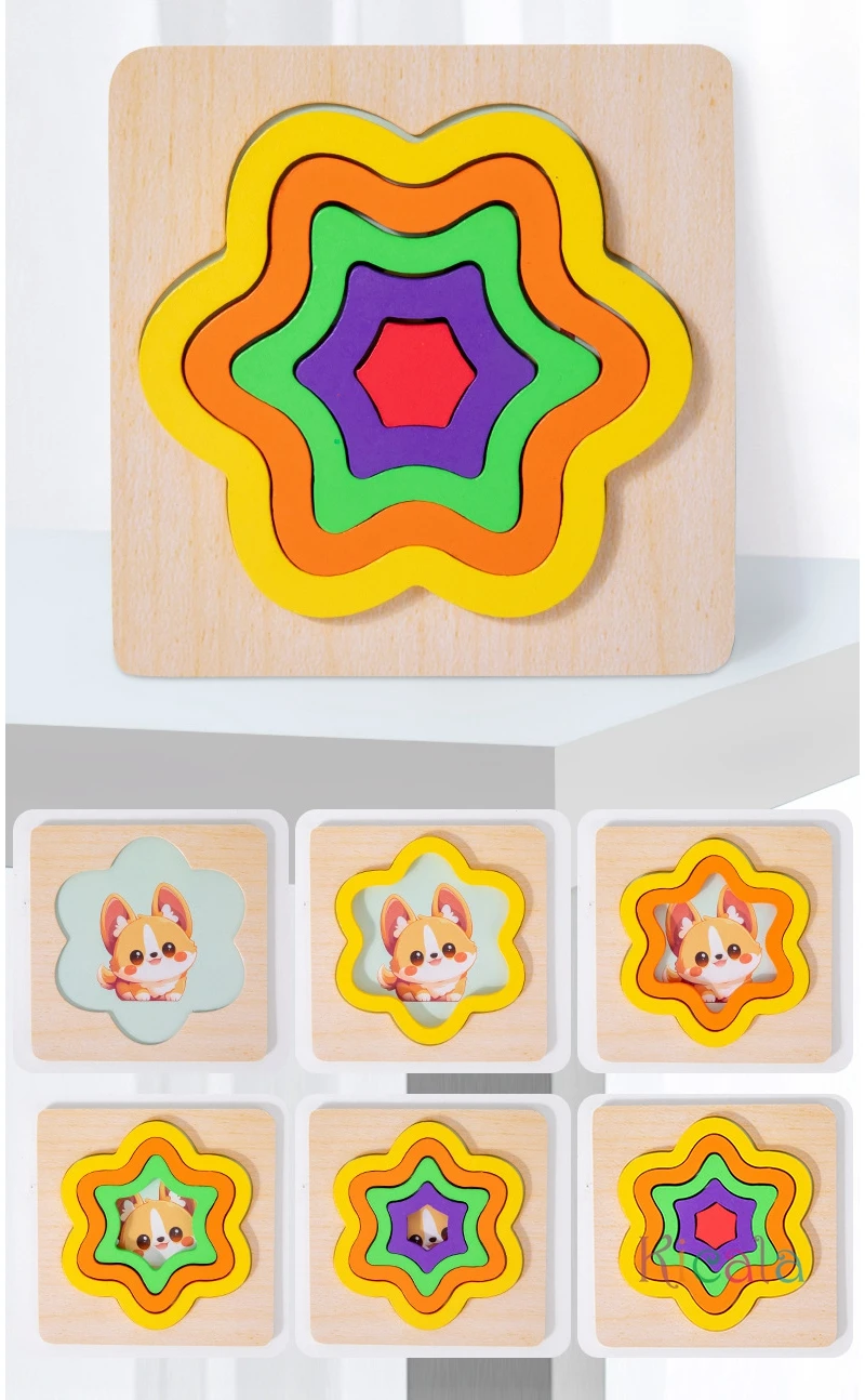 Juego de combinación de rompecabezas de forma geométrica para niños pequeños de madera, juguetes educativos Montessori con lógica de pensamiento y cognición de colores