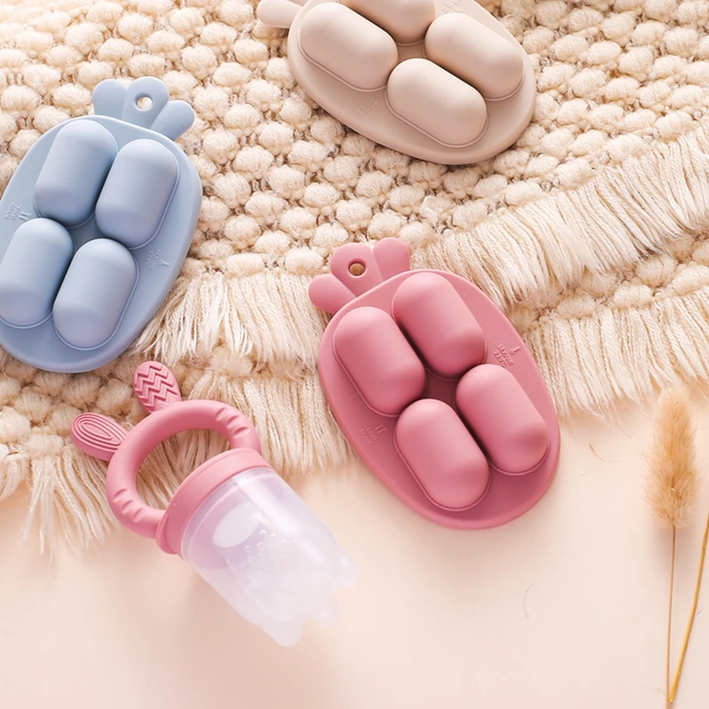 Juego de comedero de frutas con diseño de animales de conejito, bandeja congeladora de leche materna, bandeja congeladora de sopa de alimentos, molde de paletas de silicona sin BPA