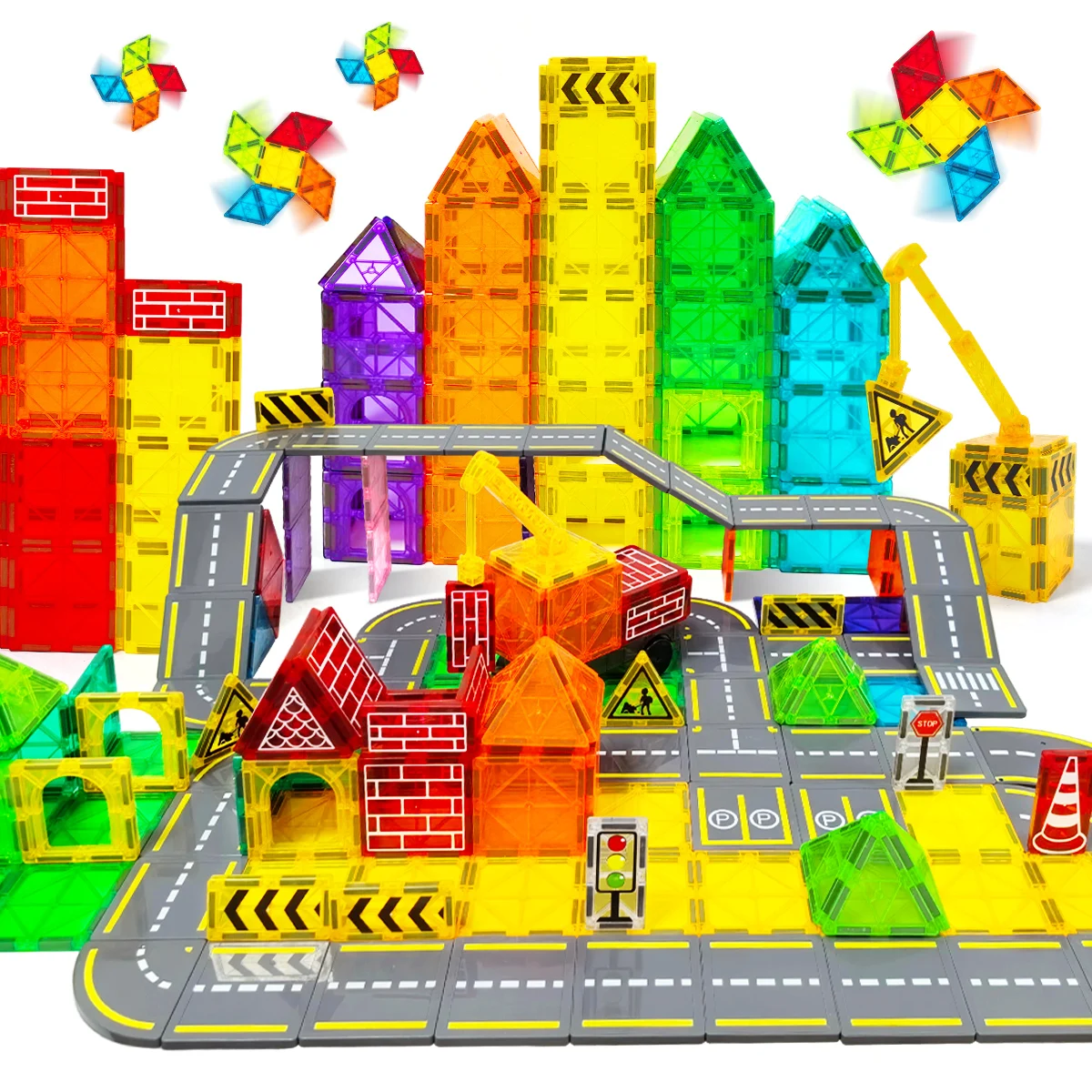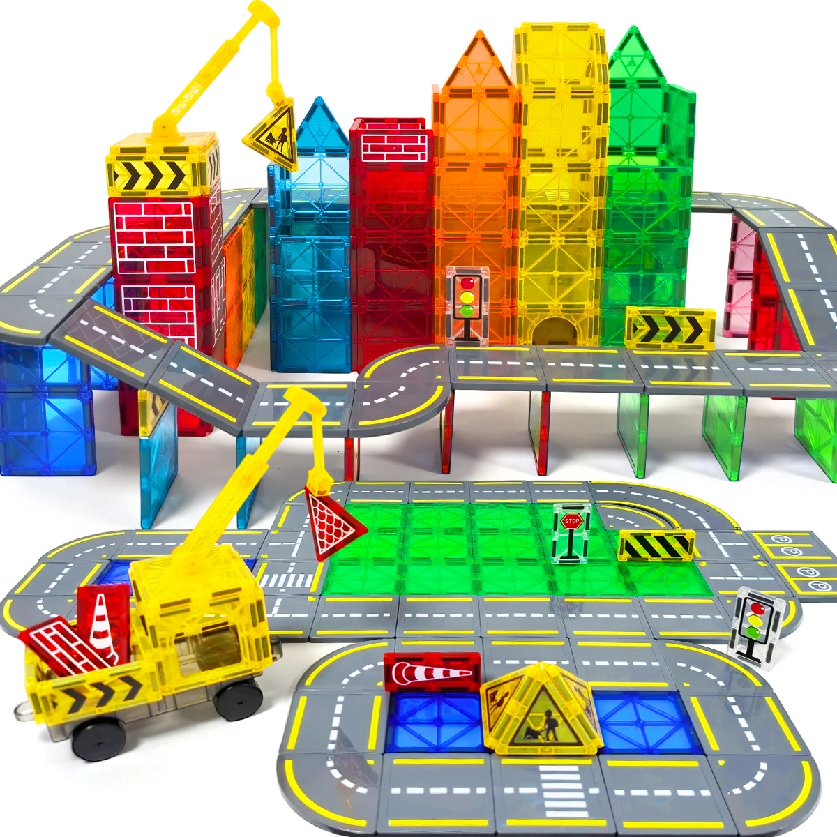 Juego de construcción de carreteras magnéticas, juguetes para niños mayores de 3 años, regalo para niños y niñas, bloques de construcción magnéticos, juguetes educativos Montessori