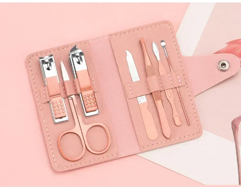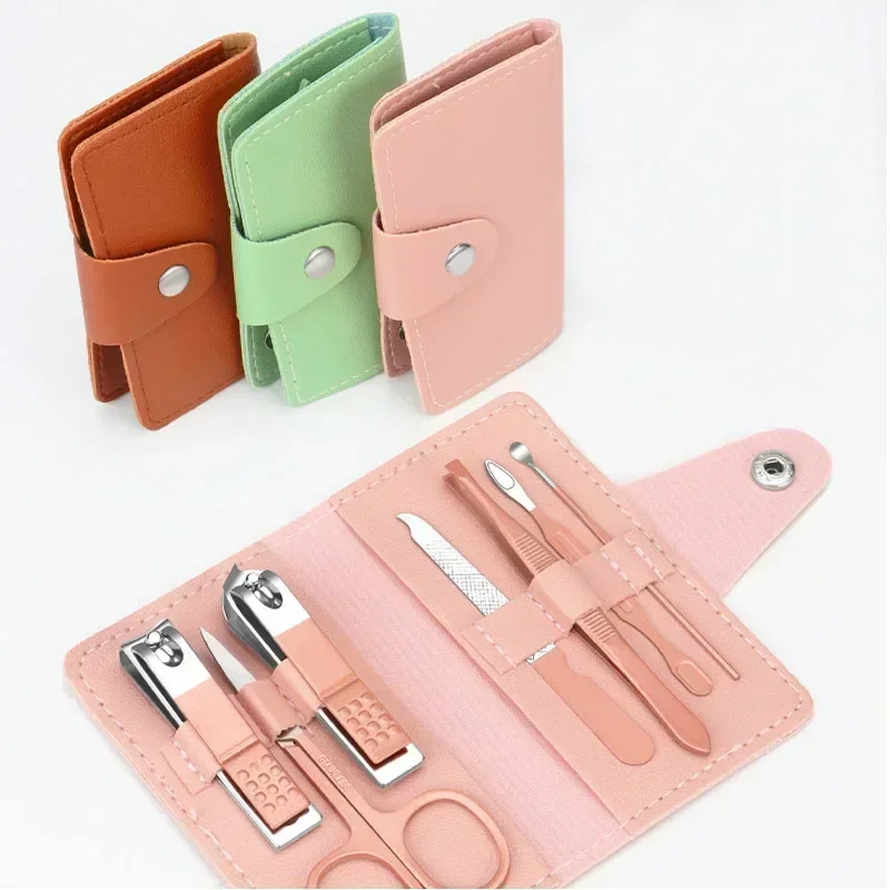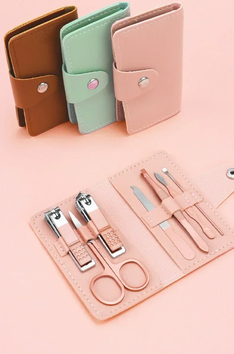 Cuidado de las uñas 7 piezas cortador tijera pinzas cortaúñas manicura pedicura Kit conjunto con funda colorida de cuero PU