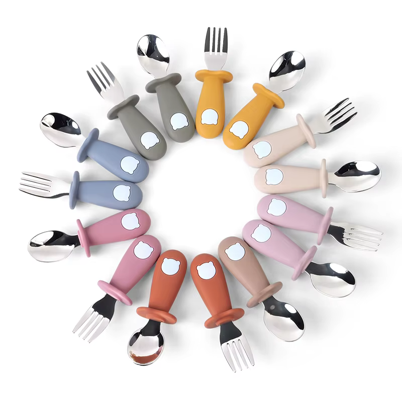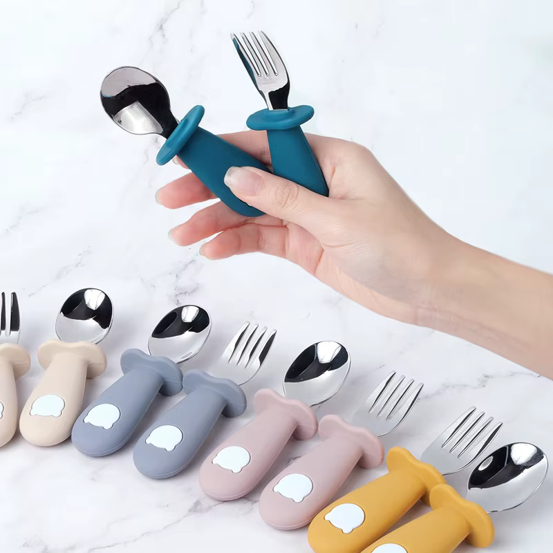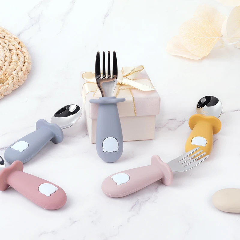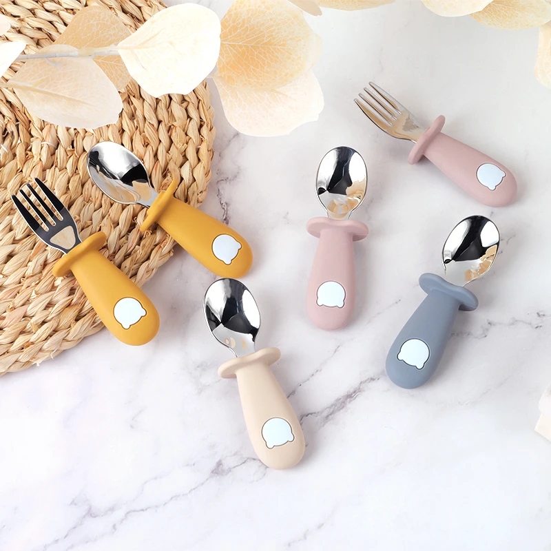 Comprar Juego de cubiertos cuchara tenedor para bebé, cubiertos para niños, cubiertos de acero inoxidable para niños pequeños, cuchillo y tenedor, cuchara de alimentación de comida para bebé de dibujos animados
