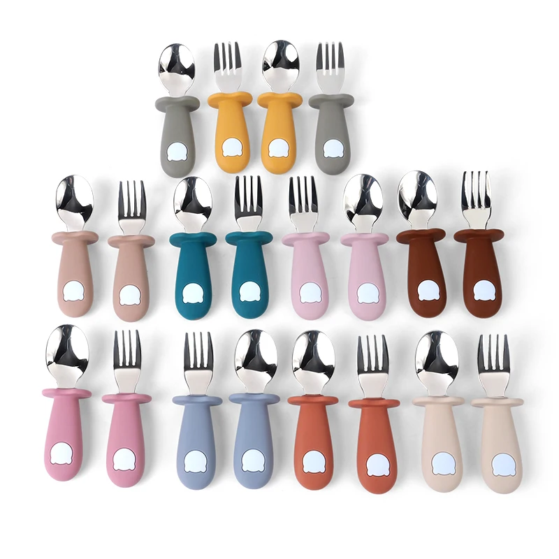Comprar Juego de cubiertos cuchara tenedor para bebé, cubiertos para niños, cubiertos de acero inoxidable para niños pequeños, cuchillo y tenedor, cuchara de alimentación de comida para bebé de dibujos animados