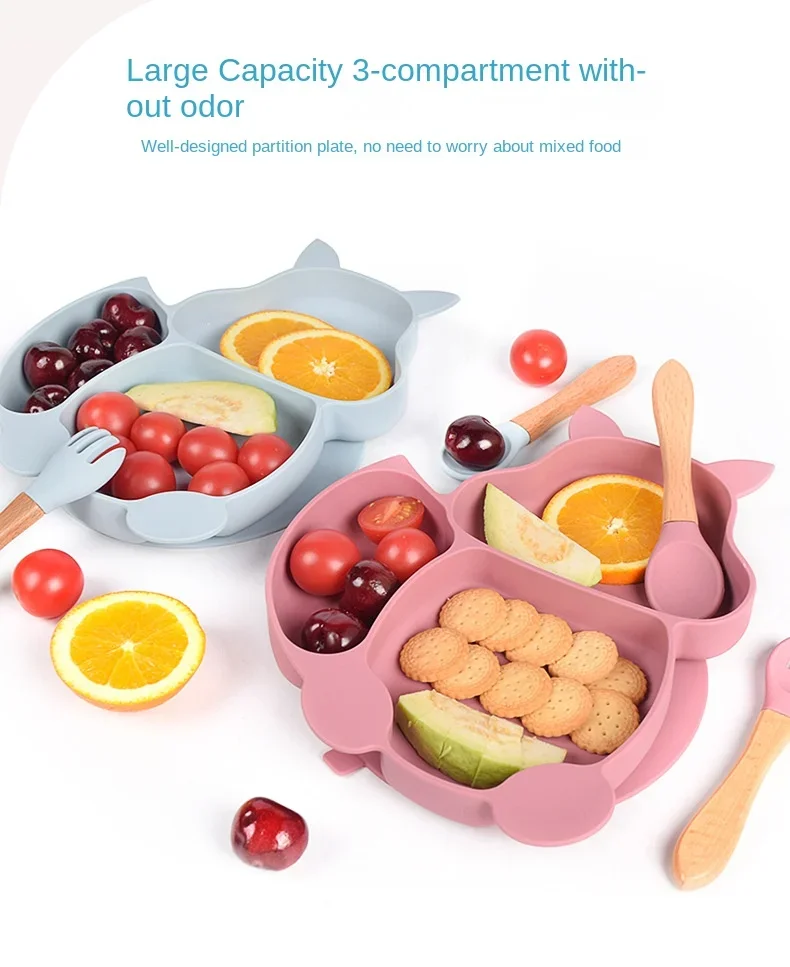 厂家直销分格儿童餐具 防滑防摔婴儿吸盘碗 宝宝一体式硅胶餐盘 食品级硅胶儿童餐盘硅胶可吸餐盘 宝宝吃饭防摔一体式