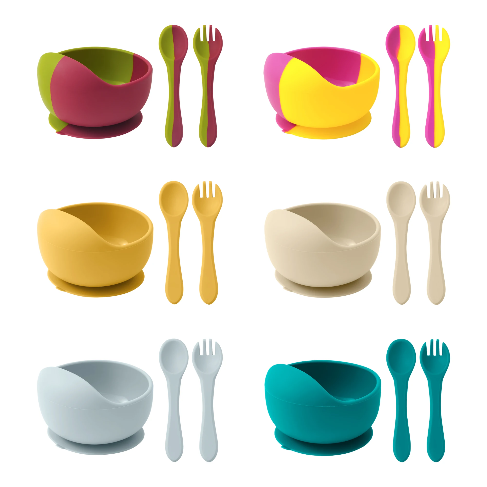 Juego de cuencos de alimentación de silicona para bebé, cuchara impermeable, juegos de entrenamiento de alimentación para niños, vajilla con cuenco con ventosa de colores mezclados, 3 uds.