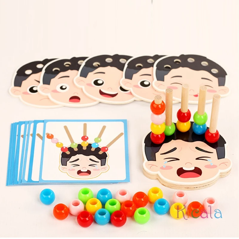 Juego de cuentas de enhebrado para bebé, juguetes sensoriales Montessori, clasificación de colores a juego de emociones, habilidades motoras finas, juguete creativo educativo temprano