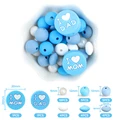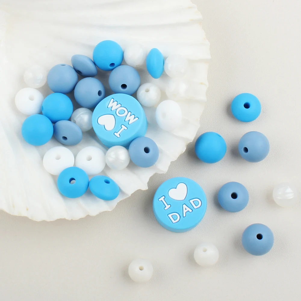 Comprar Juego de cuentas redondas de silicona para fabricación de joyas, accesorios de cadena de chupete DIY, I Love Mum and Dad, grado alimenticio, 34 piezas por juego