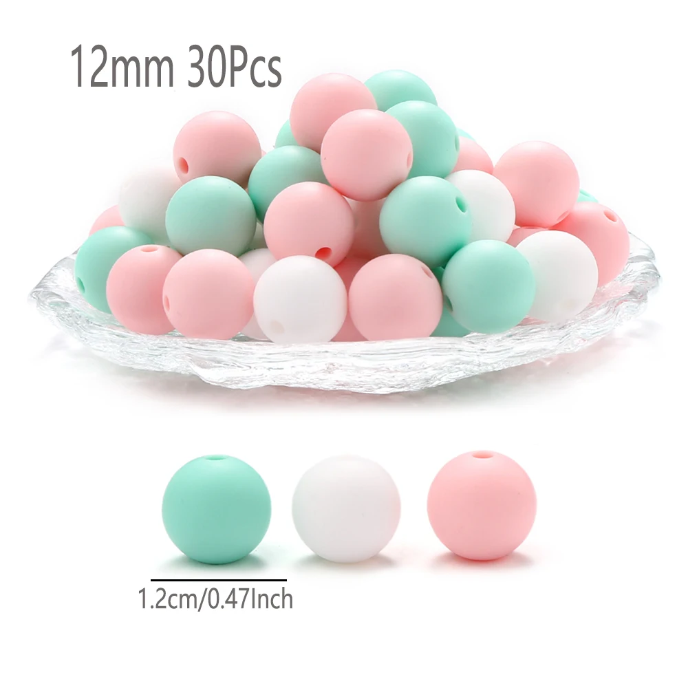 Comprar Juego de cuentas redondas de silicona para mordedor de bebé, accesorios de collar, cuentas de dentición para bebé, juguetes seguros sin Bpa, 30 piezas