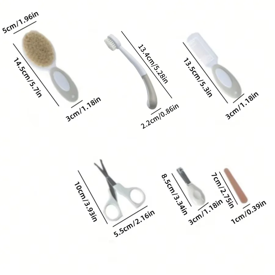 Juego de cuidado de seguridad para recién nacidos, 6 uds., incluye cepillo para el pelo, peine, cortaúñas, cepillo de dientes, Kit de aseo esencial para bebés, niños y niñas