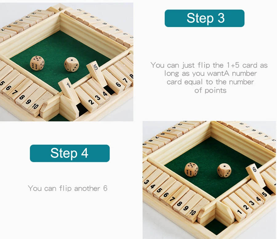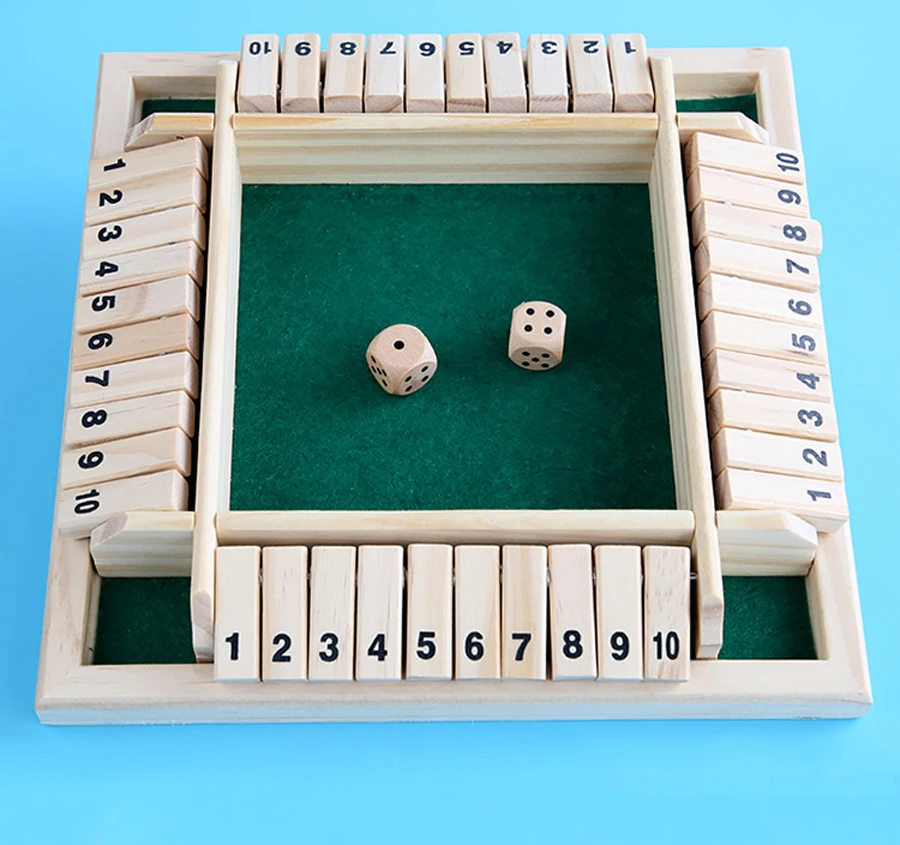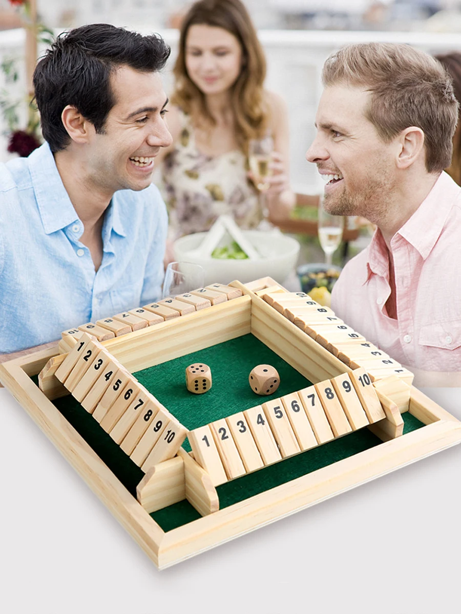 Juego de mesa Wooden Shut The Box: obtendrás el juego de mesa con 2 dados, juego de dados de 4 caras con 10 tarjetas con números abatibles, excelente fiesta imprescindible para Navidad, cumpleaños, picnic, etc.