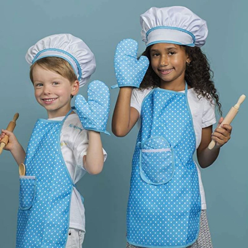 Juego de horneado para niños: incluye un gorro de chef suave, un delantal con cordones, un guante de horno, una cuchara de madera, un rodillo manual y cortadores de galletas.Satisface las necesidades de horneado de su hijo en un juego de rol de chef.