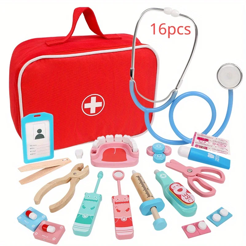 Juego de dentistas de madera para niños, Kit de juguetes de simulación de Doctor, enfermera, juego de rol, accesorios médicos, bolsa para niños y niñas