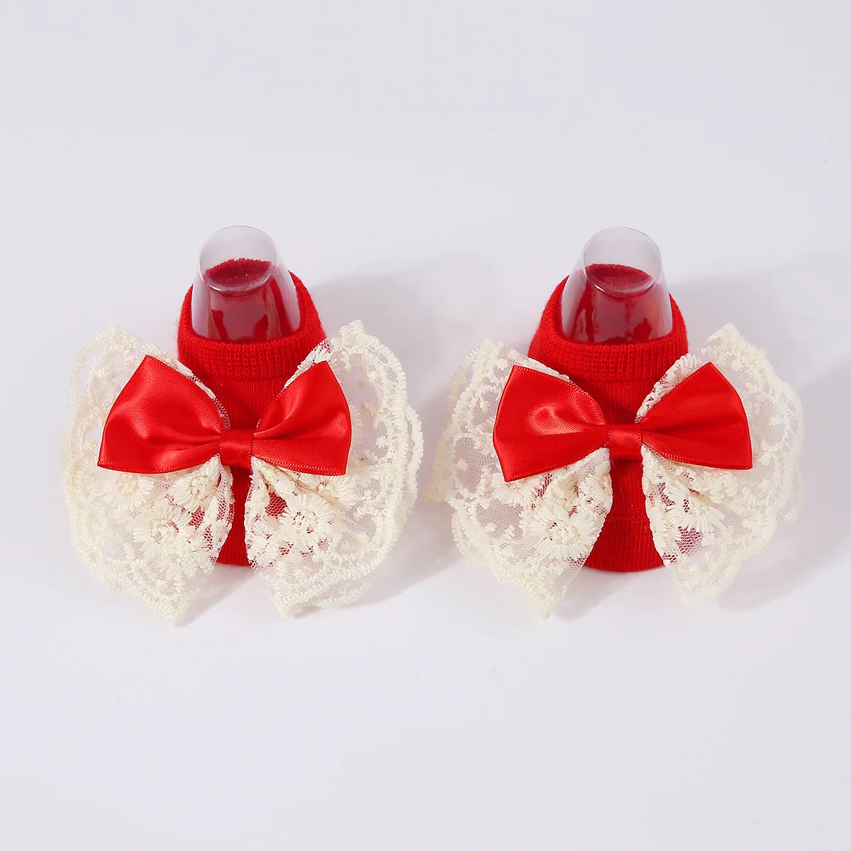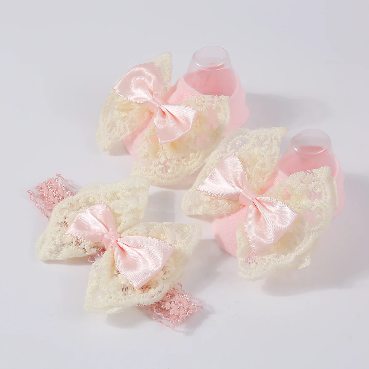 Comprar Juego de diademas de encaje con lazo para recién nacido, calcetines suaves para bebé, calcetín para preandador, calcetines de punto de algodón para niña, 1 Juego