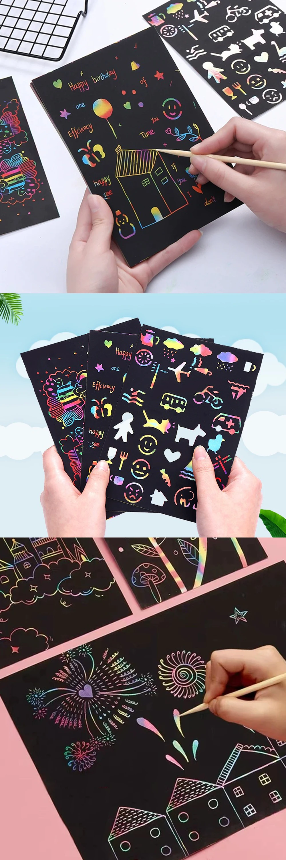 Comprar Juego de dibujo de rasguño mágico de arcoíris, 16K, 32K, papeles para rascar, palo de madera, regla de espirógrafo, regla de pintura, arte divertido, regalos de grafiti ZYF