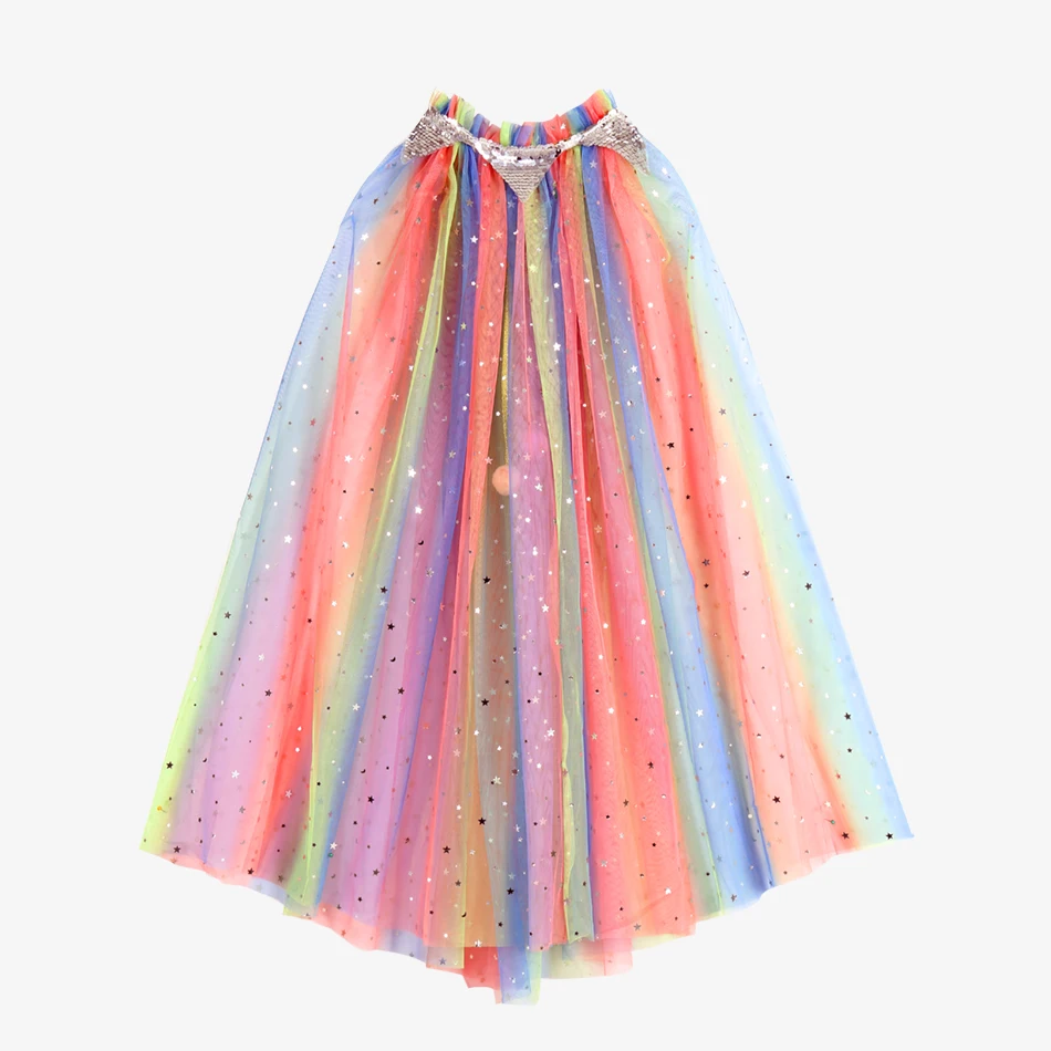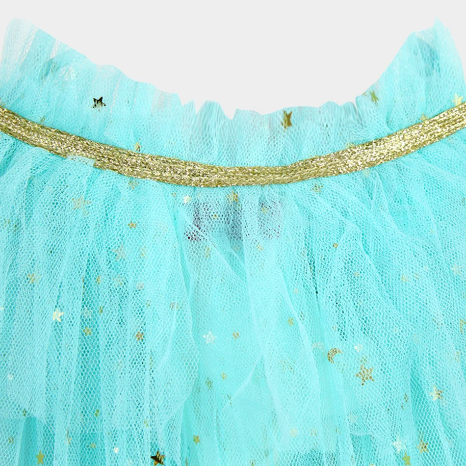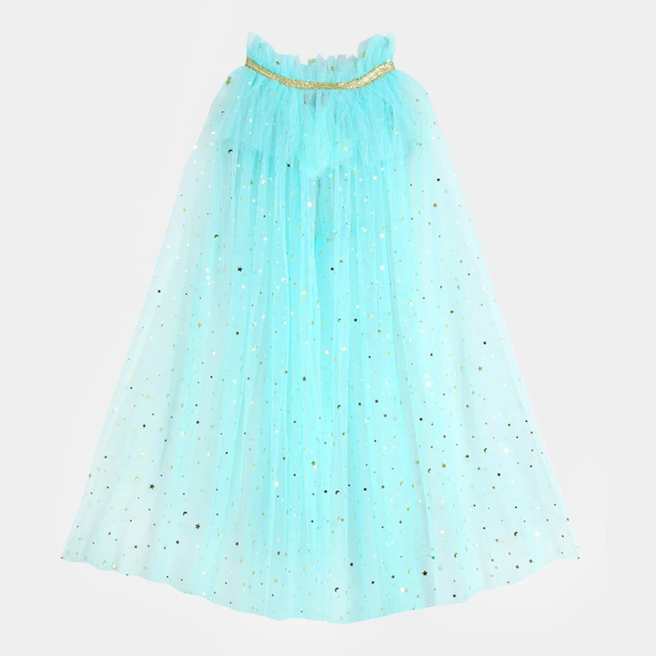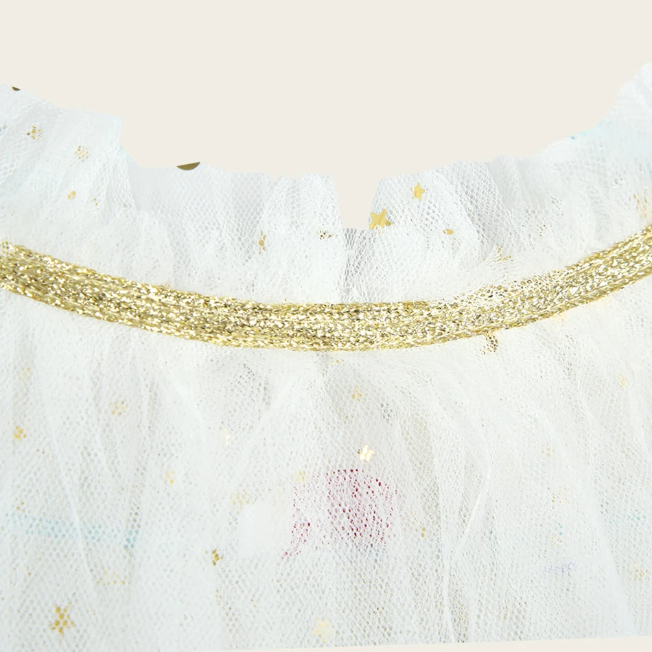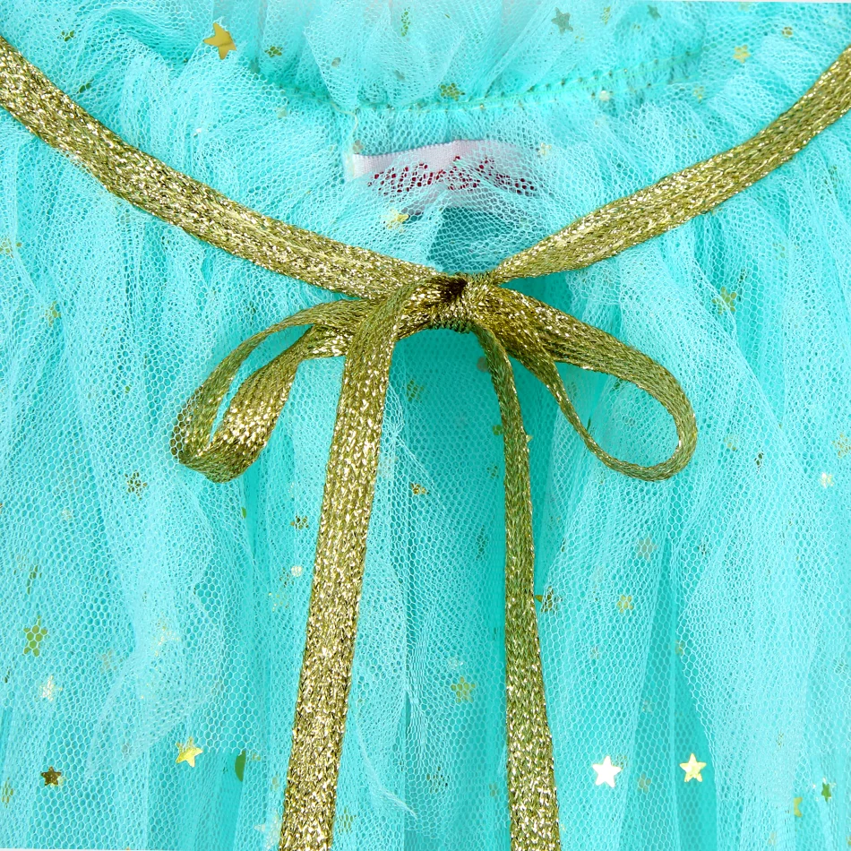 Nombre del vestido: Conjunto de disfraz de actuación para niñas de 9 piezas, capa de tul ligera, bolsa de corona con varita para niños, ideal para fiestas de cumpleaños de Halloween