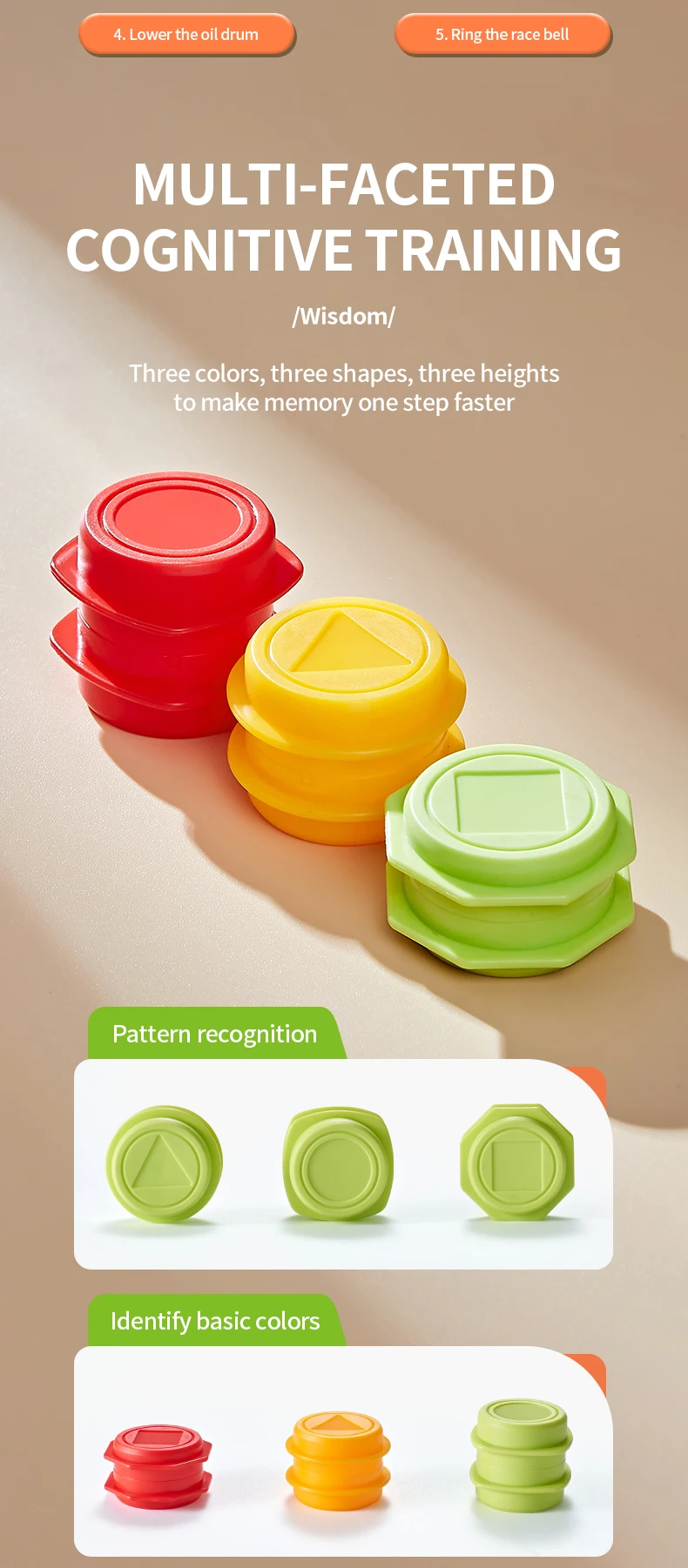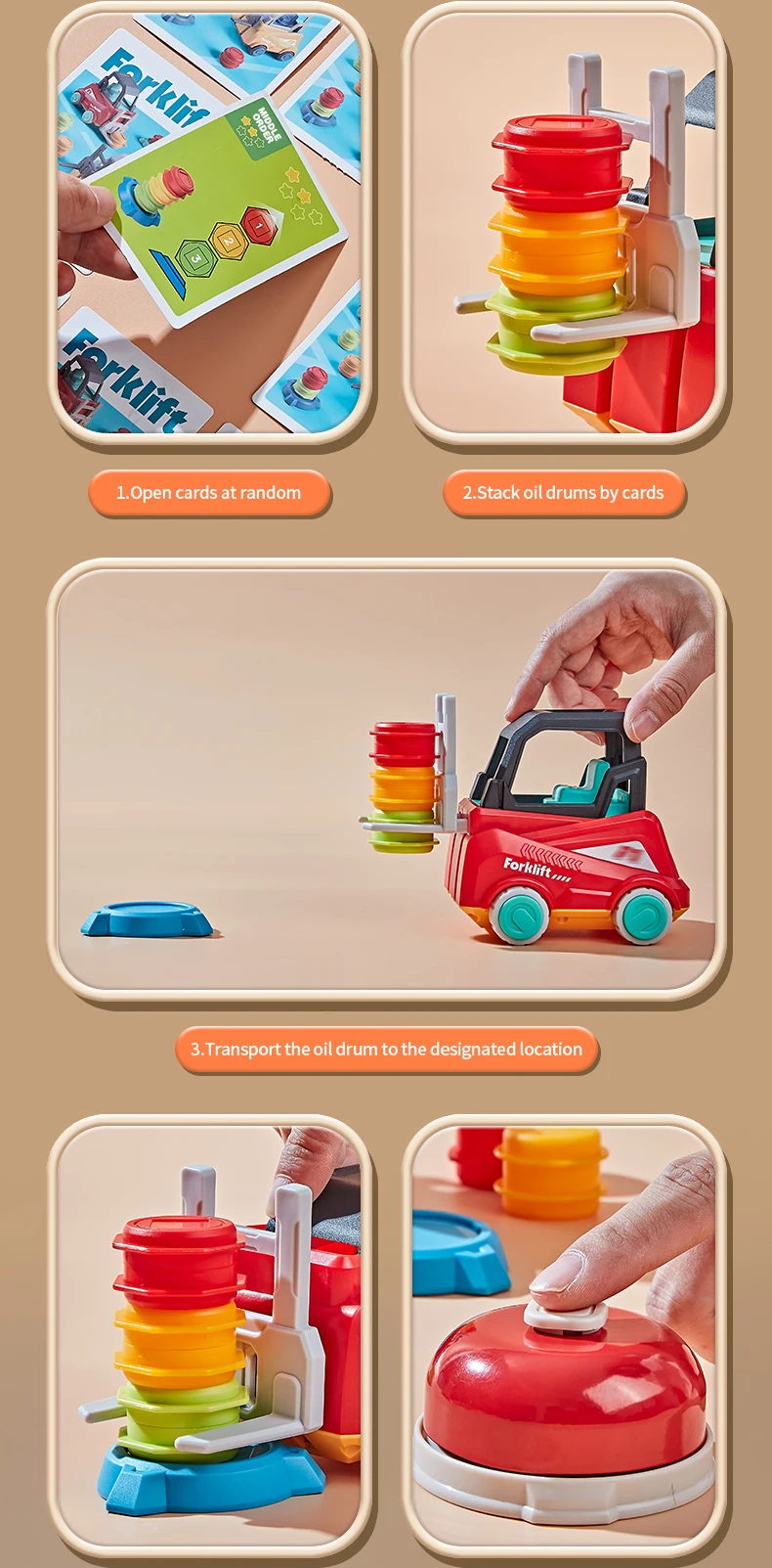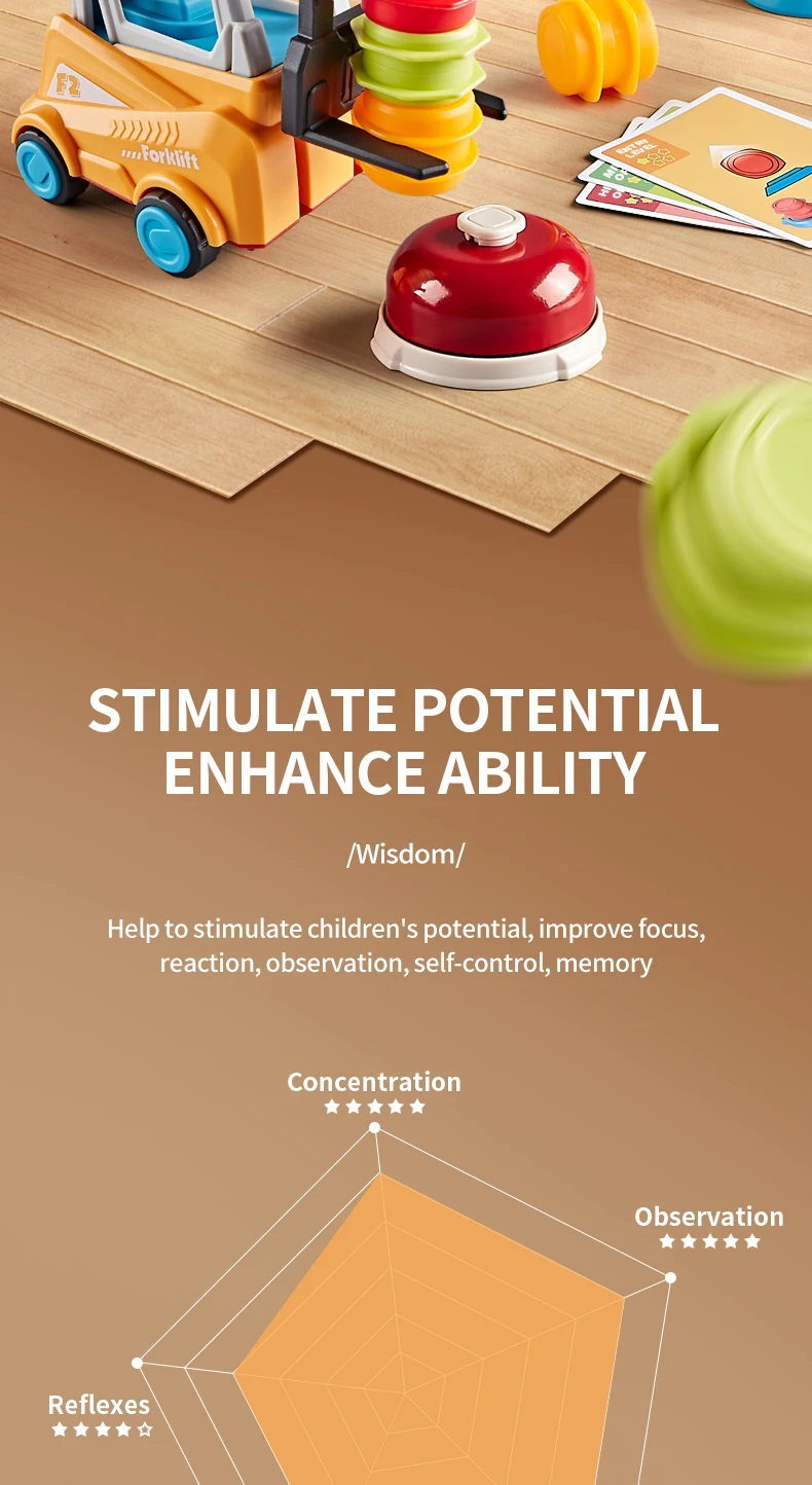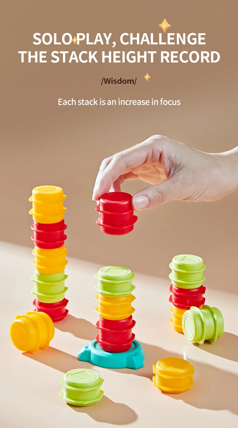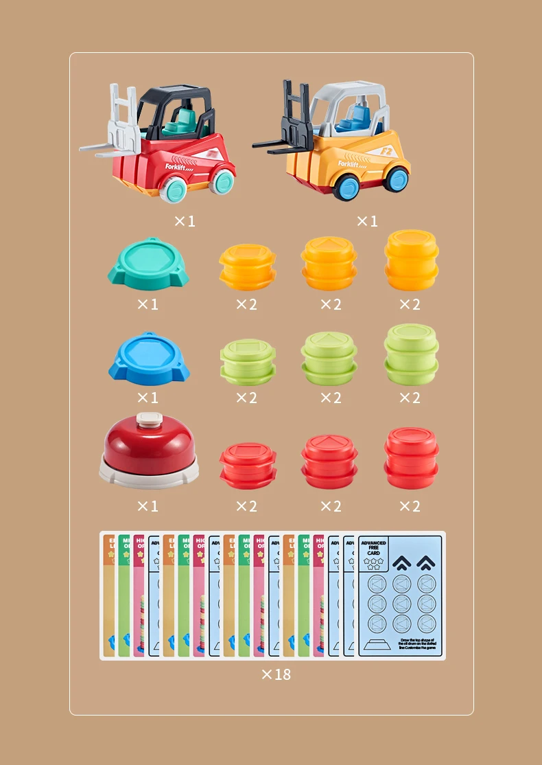 4.Fácil de jugar: gire la tarjeta aleatoriamente, apile los tambores de acuerdo con la tarjeta, transporte los tambores al lugar designado, coloque los tambores, gana quien sea más rápido.