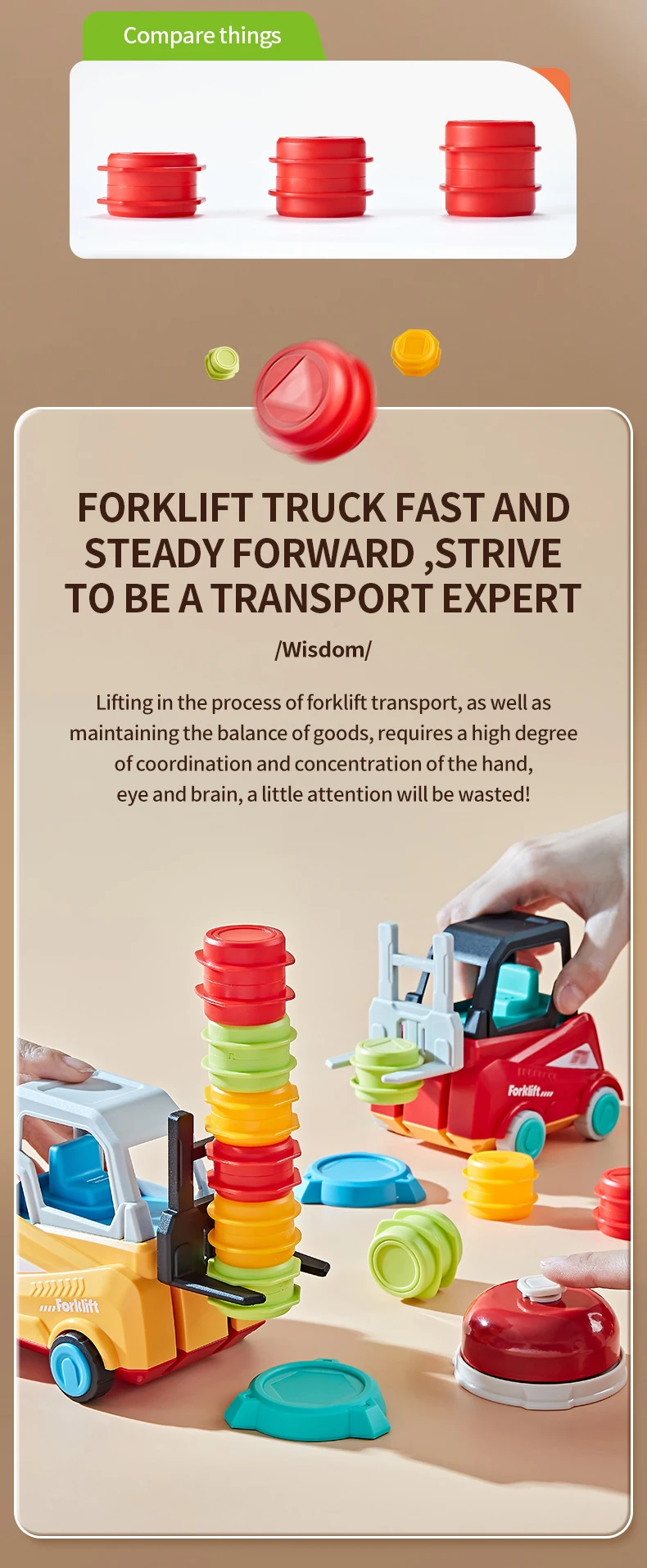 1.Juego de transporte de montacargas: a todos los niños o adultos les encanta apilar rompecabezas o usar pequeños bloques encantadores como un juguete abierto.