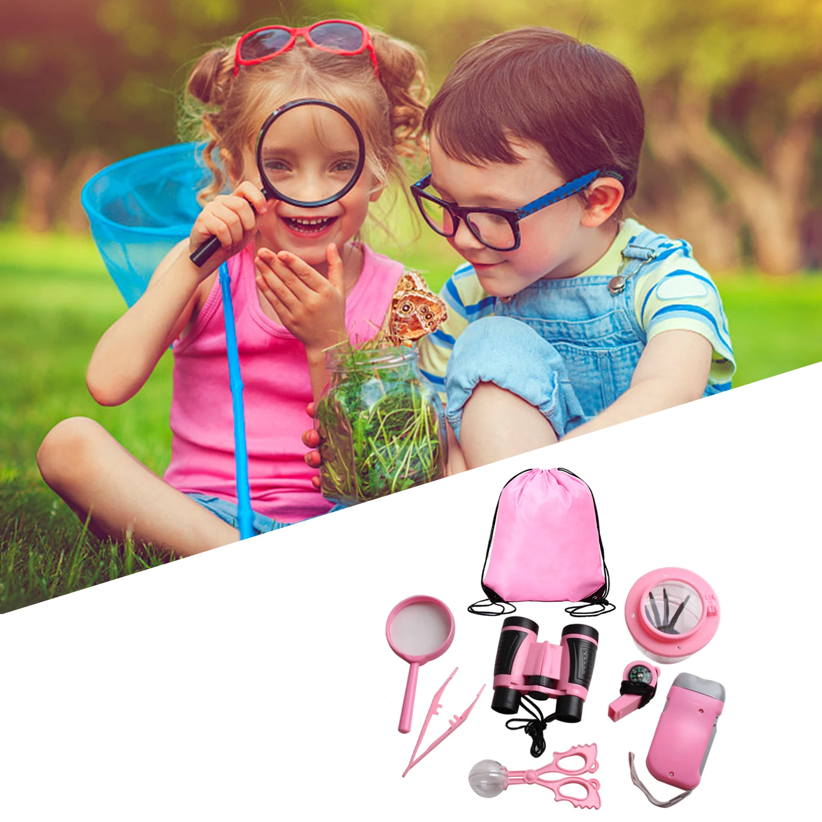 Bugs Catcher Kit para niños Juego educativo de exploración STEM con binoculares Silbato Linterna Paquete de aventura para niños de 3 años