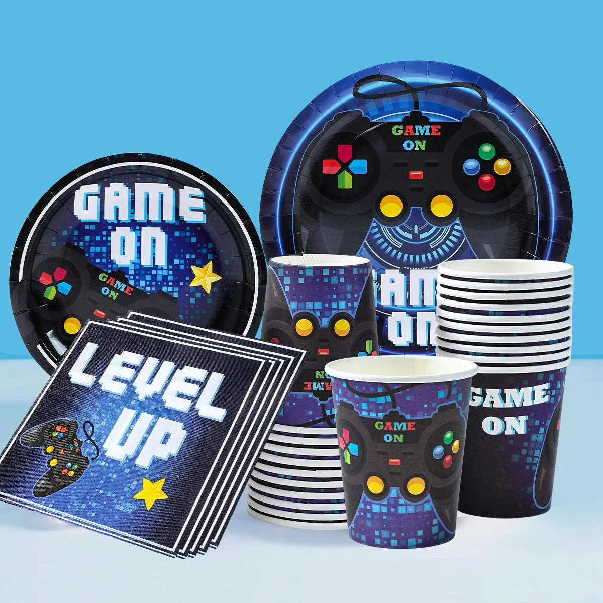 Juego en decoración para fiesta temática, platos de papel desechables, nivel de taza, suministros para fiesta de feliz cumpleaños, suministros para fiesta de cumpleaños para niños