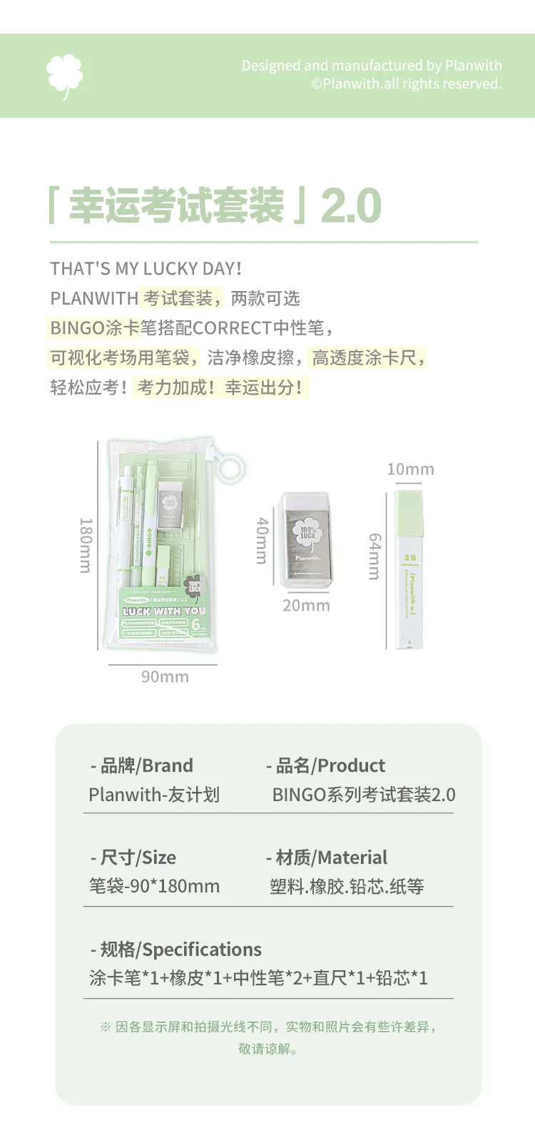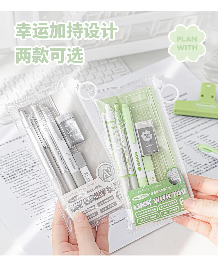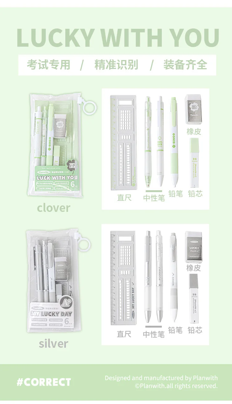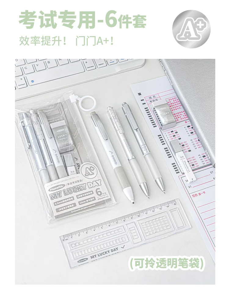 Juego de exámenes, bolígrafo neutro de prensa, lápiz automático 2B, regla de goma, seis artículos de papelería para estudiantes, 1 Juego