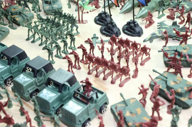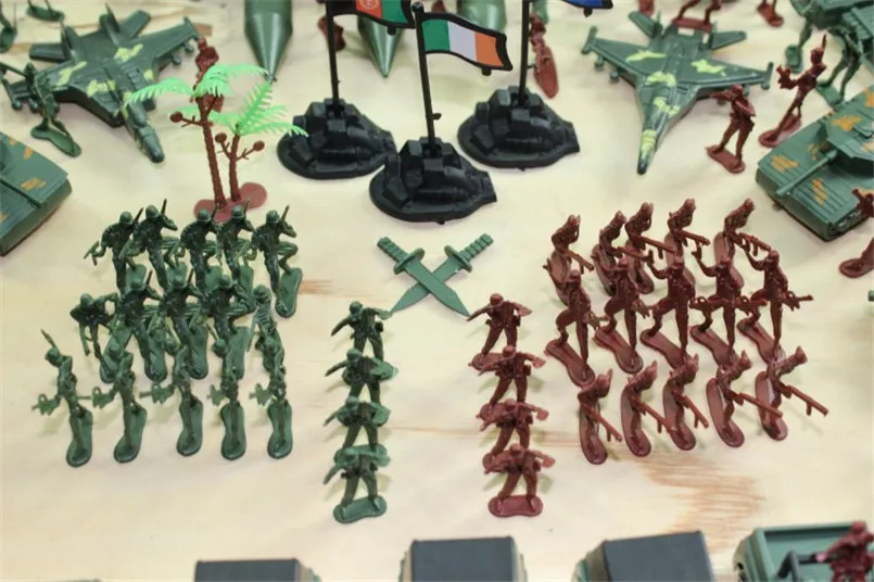 3. El paquete incluye:Árboles * 3, sacos de arena * 4, tanques * 6, aviones * 4, granadas * 2, cohetes * 2, banderas * 5, jeeps * 5, caja de munición * 4, hervidores * 2, pistolas * 8, pequeños telescopios/palas/dagas/intercomunicadores/puntos de referencia/vallas * 2, bidones de aceite * 1, forma de U * 2, tablones de anuncios * 1, Soldados de 4cm * 240 (color aleatorio)