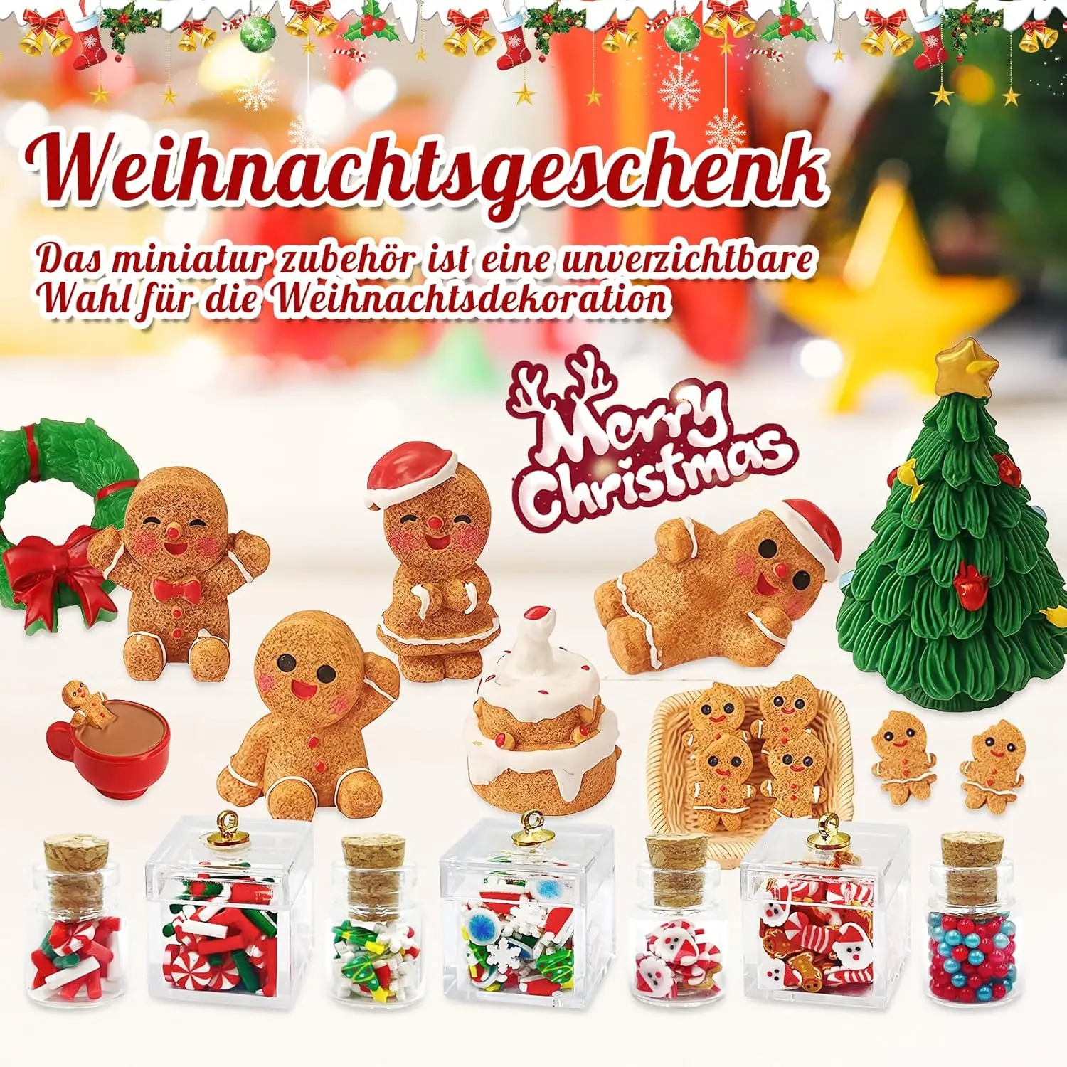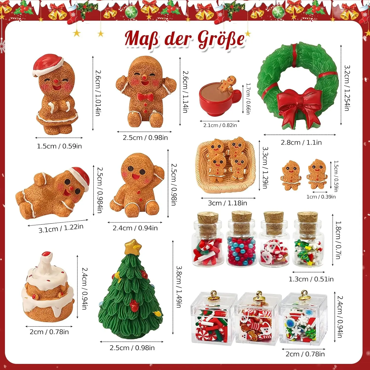 - DECORACIÓN DE NAVIDAD DE MINIATURA FESTIVA Este juego incluye 22 adorables miniaturas, como una mini corona navideña, un árbol de Navidad, un dulce navideño, un hombre de jengibre y más, perfectas para diseñar una escena navideña festiva en cualquier casa de muñecas o exhibición navideña.