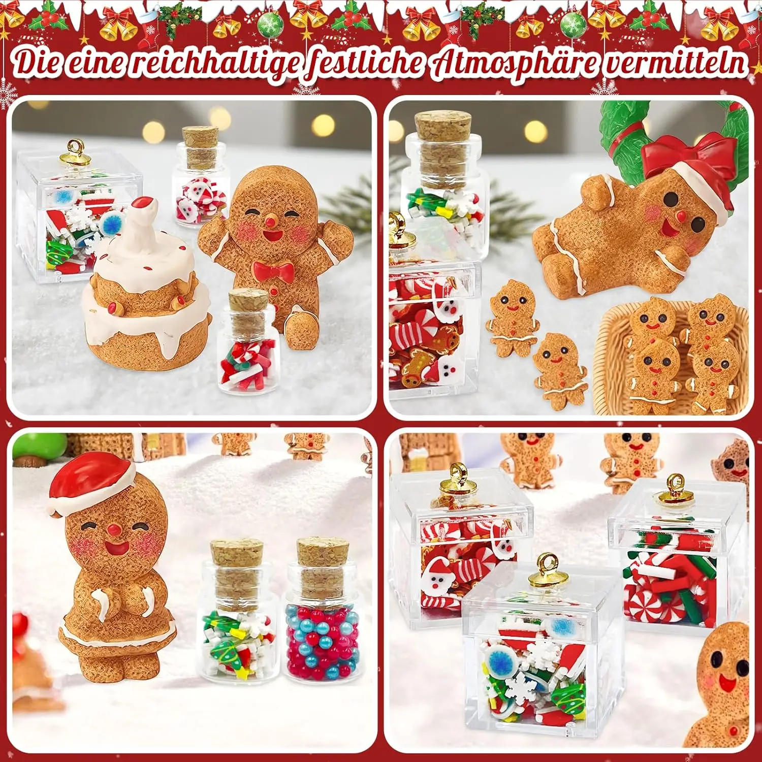 - ARTESANÍA EXQUISITA Cada pieza está cuidadosamente diseñada con texturas intrincadas y colores vibrantes, desde las suaves figuras de pan de jengibre hasta los tarros de dulces en miniatura que añaden alegría navideña a tu decoración.