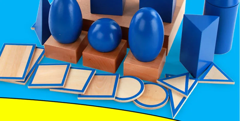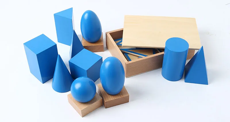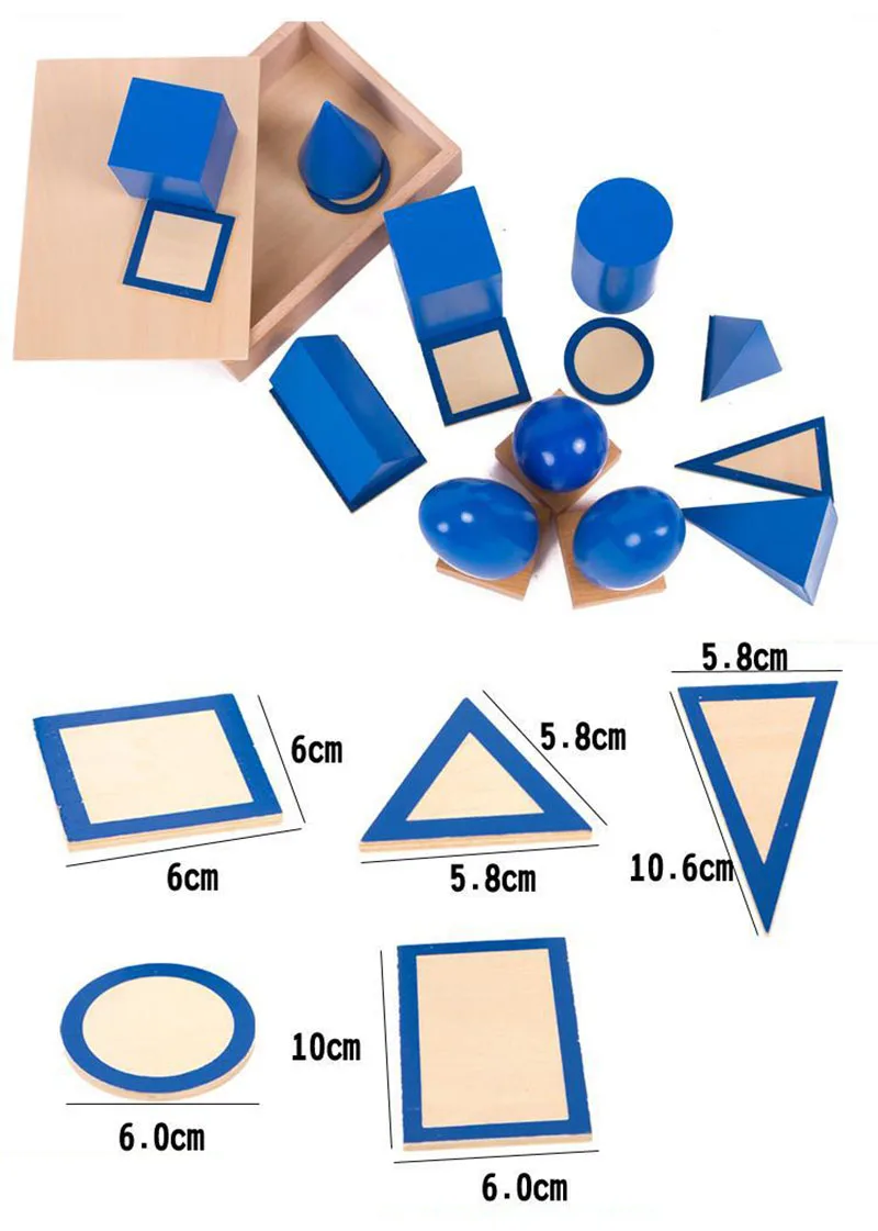 Comprar Juego de geometría Montessori de madera para niños, juegos de matemáticas, grandes formas en 3D, bloques de sólidos geométricos, juguetes de aprendizaje preescolar, regalos