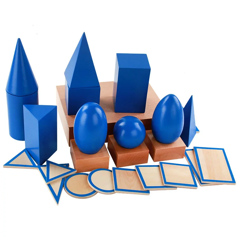 Comprar Juego de geometría Montessori de madera para niños, juegos de matemáticas, grandes formas en 3D, bloques de sólidos geométricos, juguetes de aprendizaje preescolar, regalos