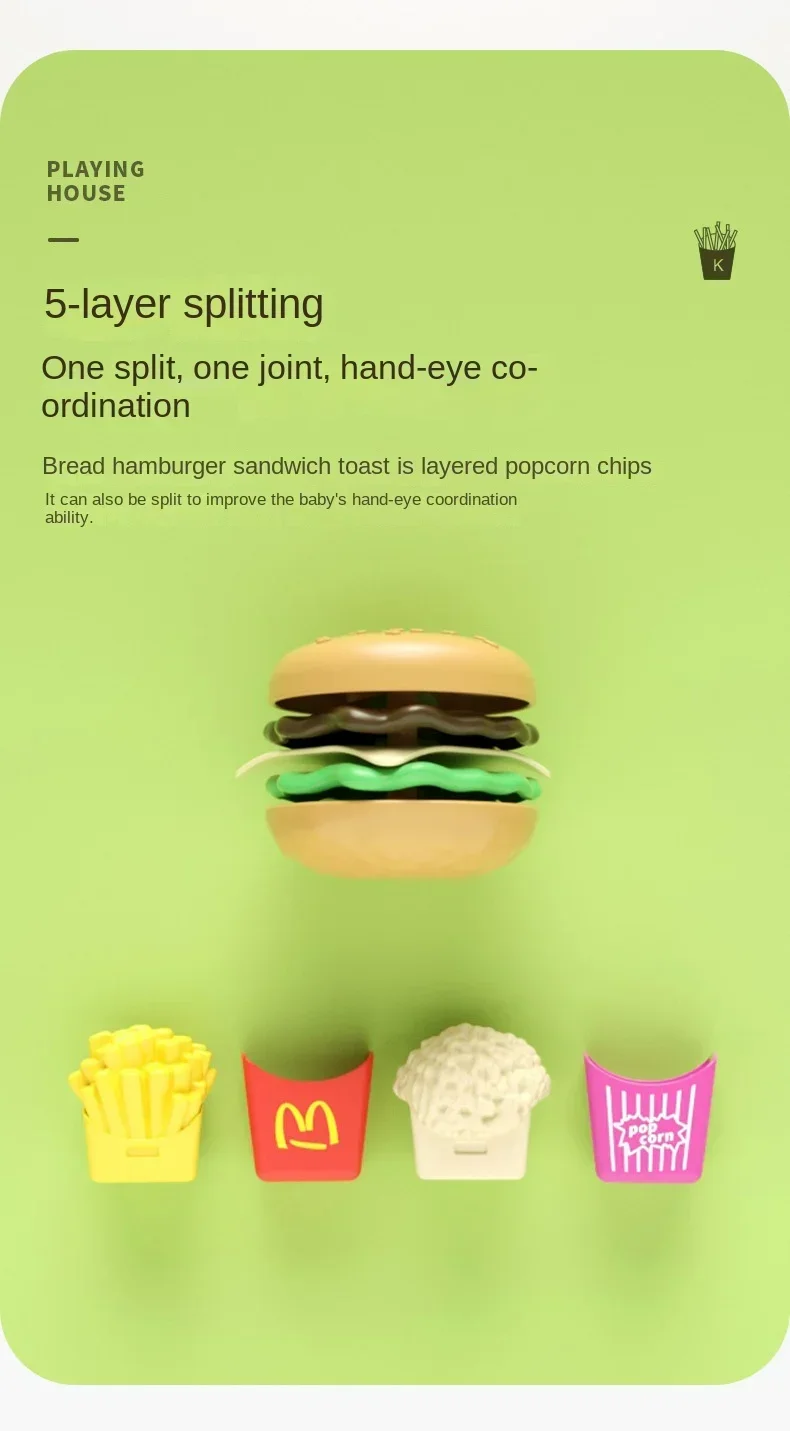 Juego de hamburguesas de comida rápida de plástico desmontable, juguete de desarrollo de inteligencia, juego de comida, juguete de cocina, regalo de cumpleaños, 9 piezas