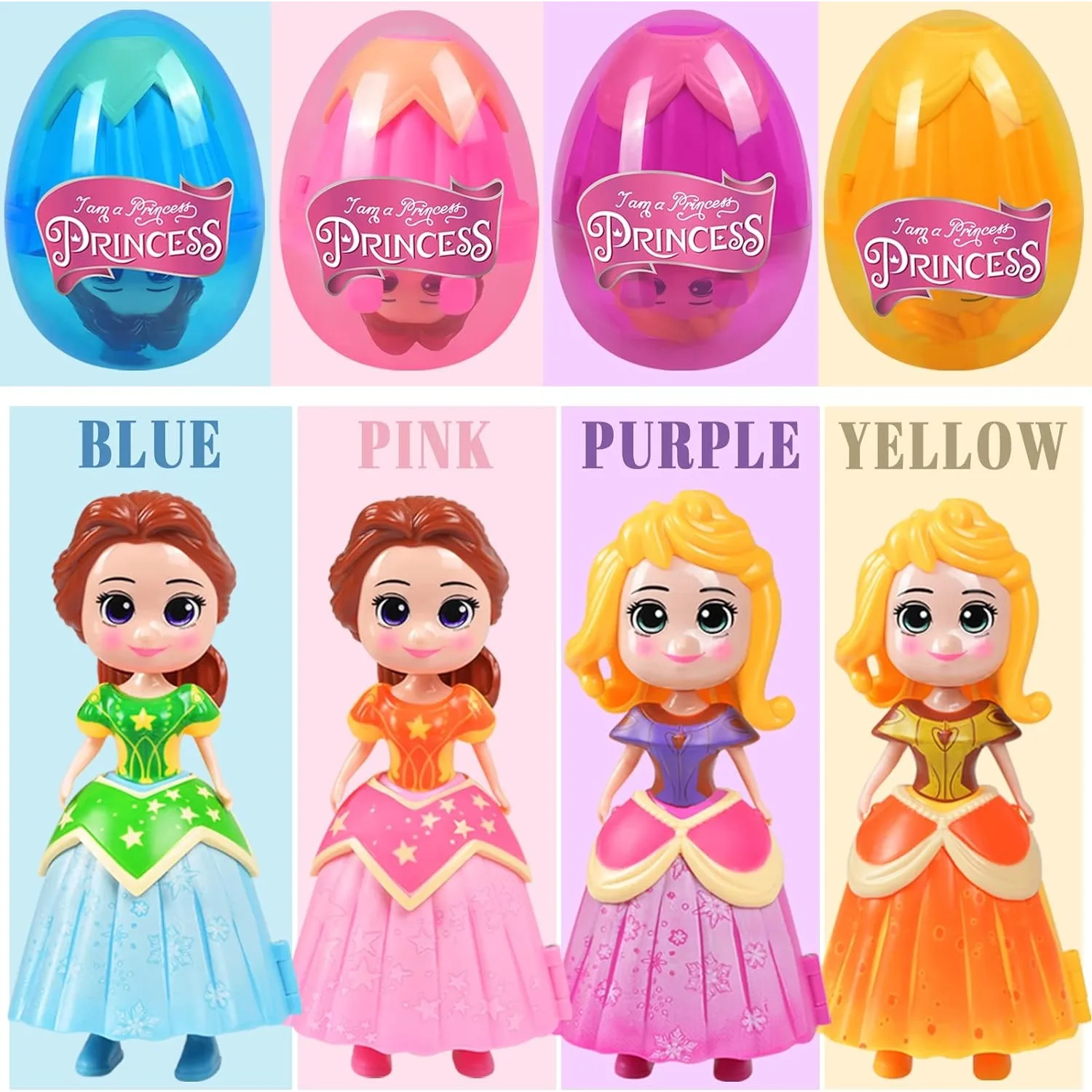 👸🏻Huevos de Pascua precargados con juguetes: preparamos 4 coloridos huevos de Pascua de plástico para sus hijos y cada juguete de huevo de Pascua tiene un modelo de acción de princesa deformable único. Hermoso y elegante, sorprenderá y alegrará a los niños.