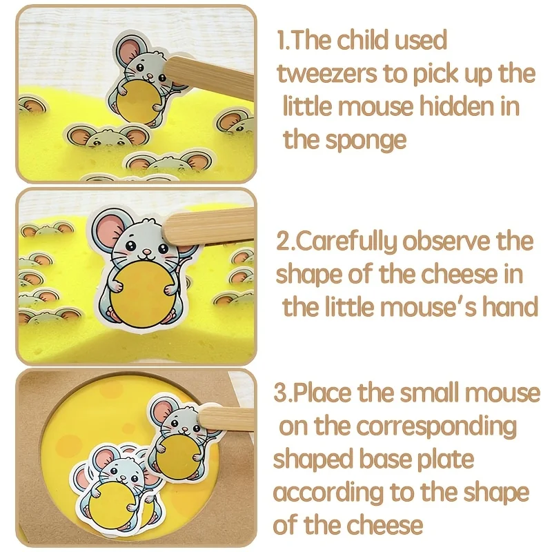 Juego a juego de ratón y queso, juguete Montessori educativo temprano, rompecabezas de reconocimiento de formas, entrenamiento de Motor fino para regalo de niños pequeños - imagen 4