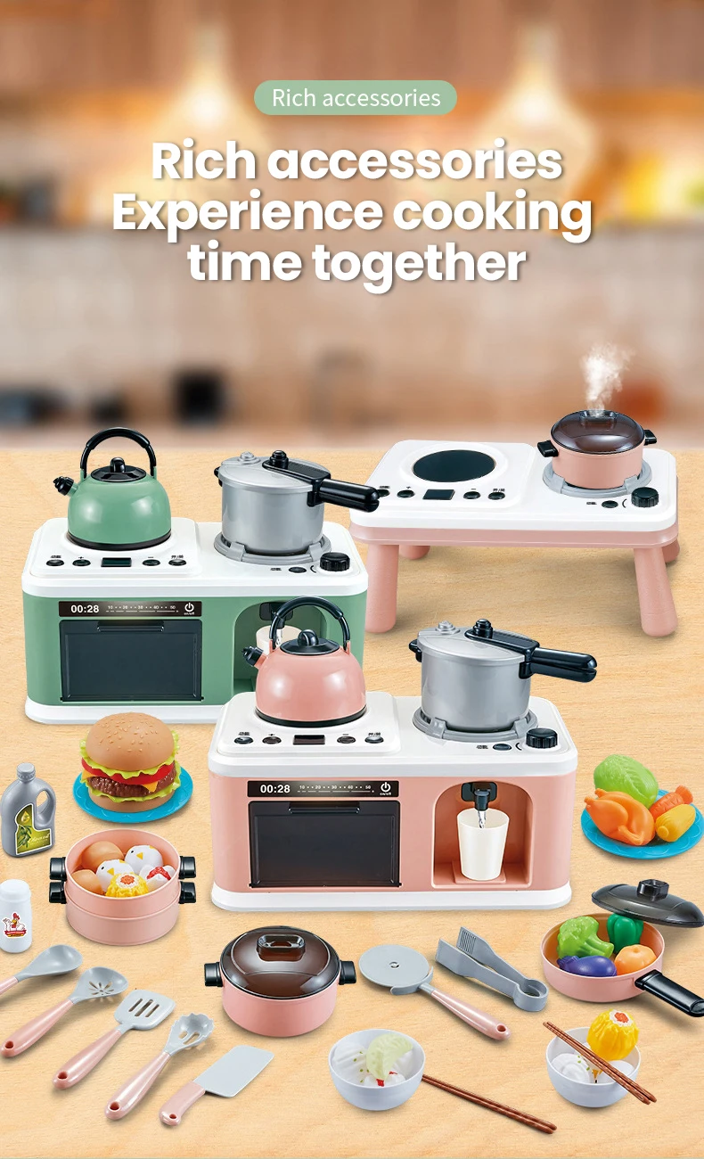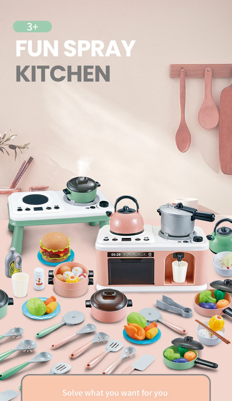 1. Kit de juguetes completo: estos juegos de cocina de simulación incluyen ollas y sartenes, platos y platos, hervidor, cuchara, pala, tenedor, alimentos falsos como frutas y verduras/ozo/comentos rápidos, etc.Gran y linda adición para cualquier cocina de juego.