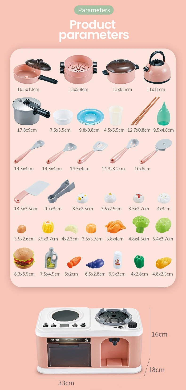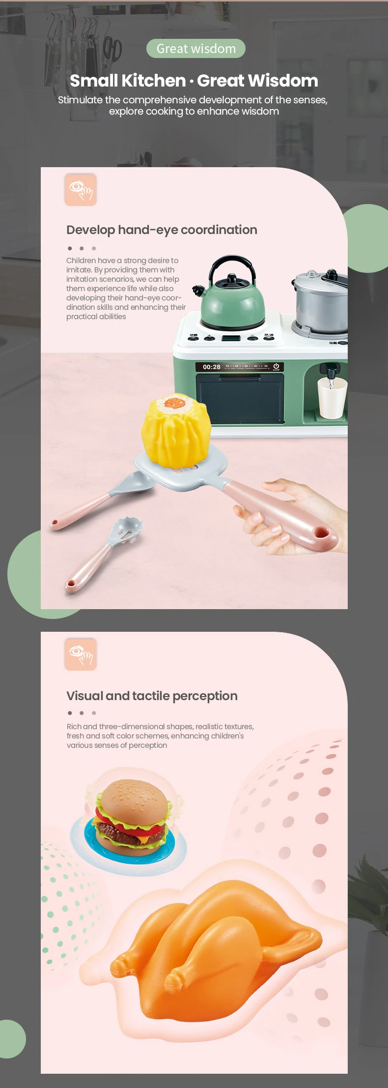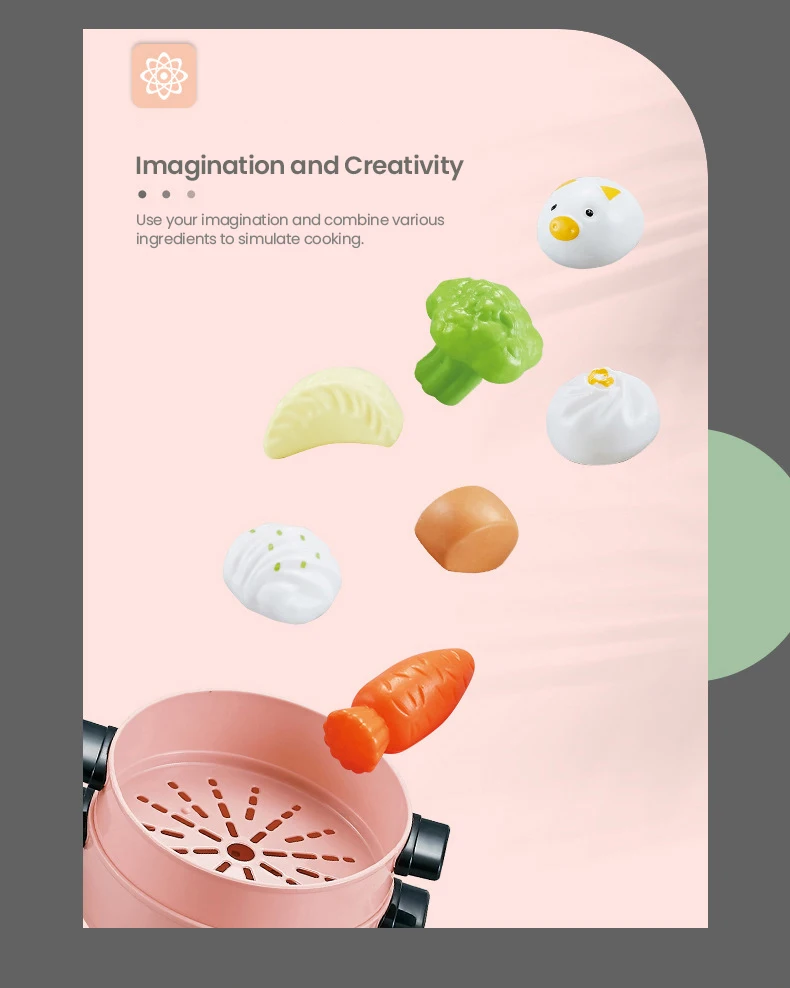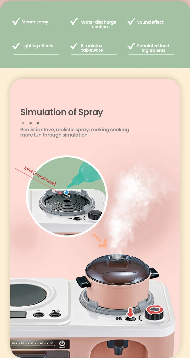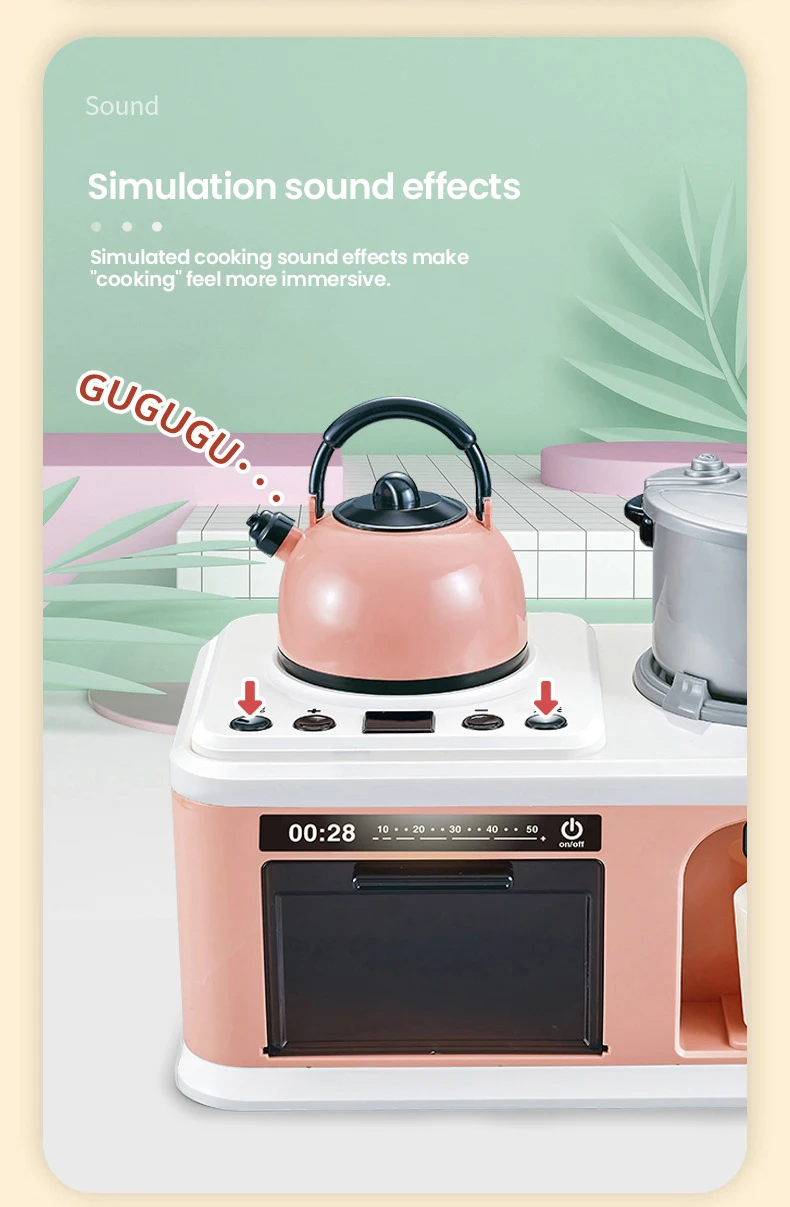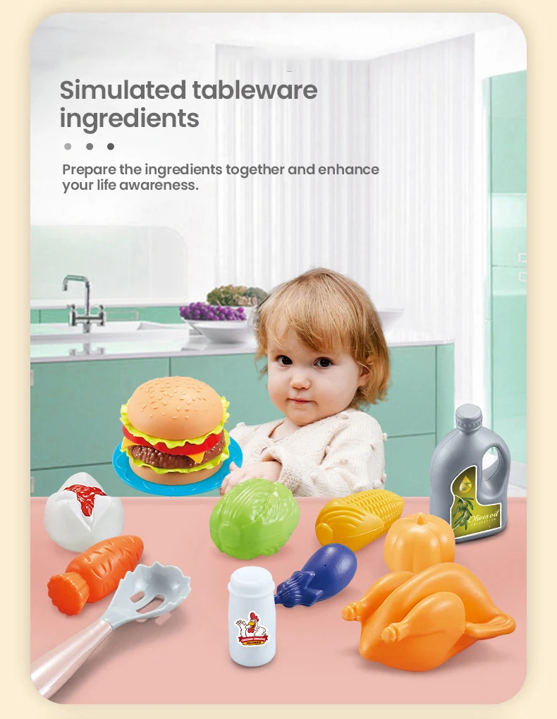 2.Divertido: el juego de cocina realista fomenta la imaginación, la destreza y el juego creativo. Enseña a sus pequeños a ser la pequeña ayuda de la madre.El hervidor se puede llenar con agua, se puede combinar libremente una variedad de frutas y verduras para permitir que los niños perciban colores y cosas jugando.