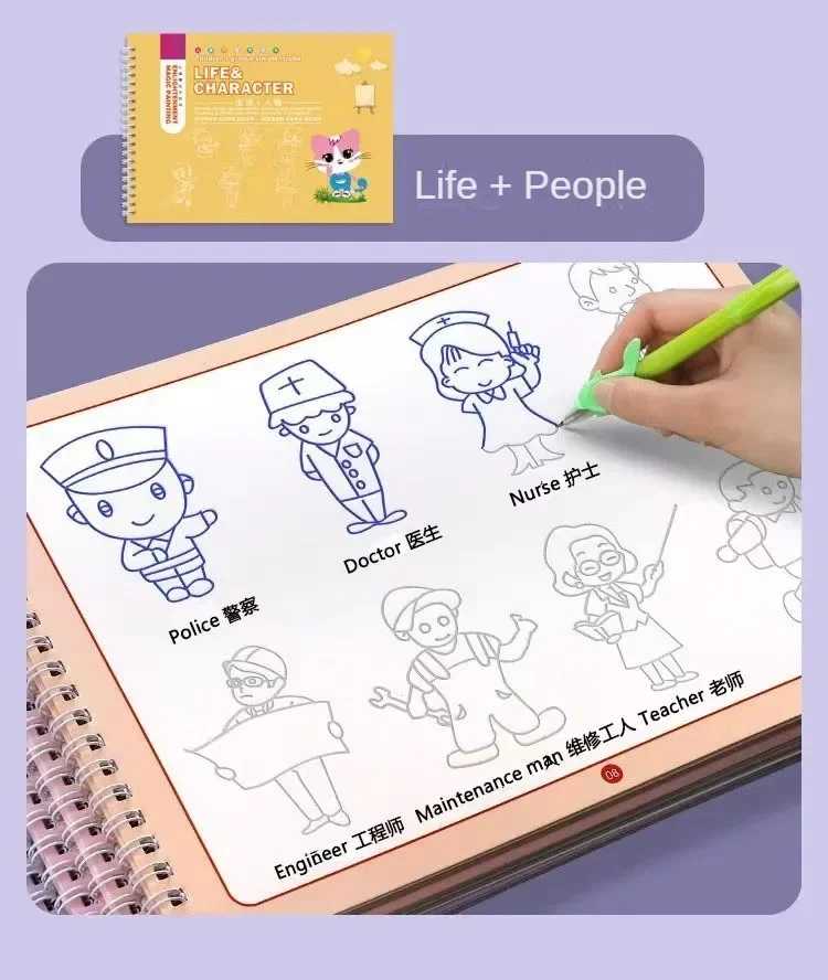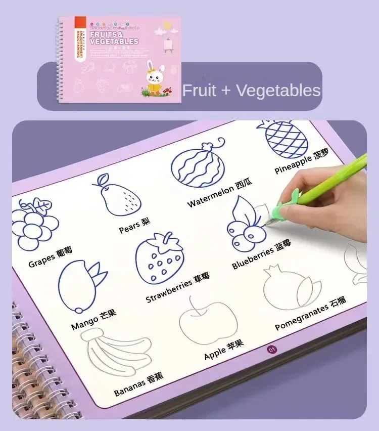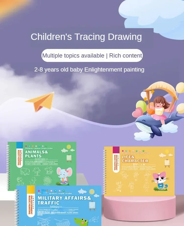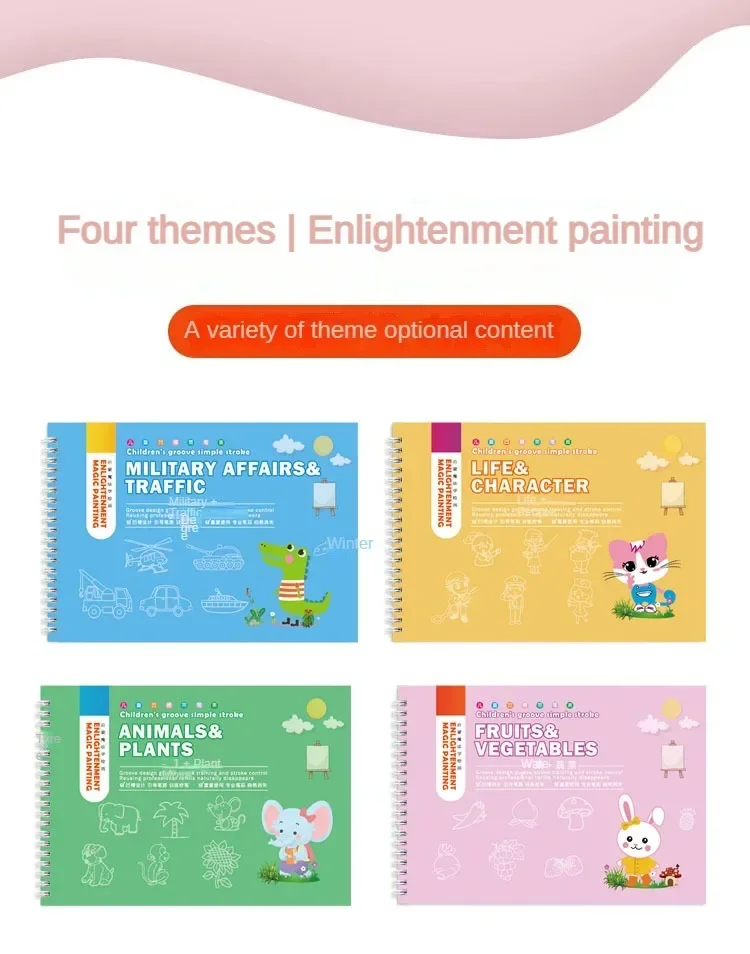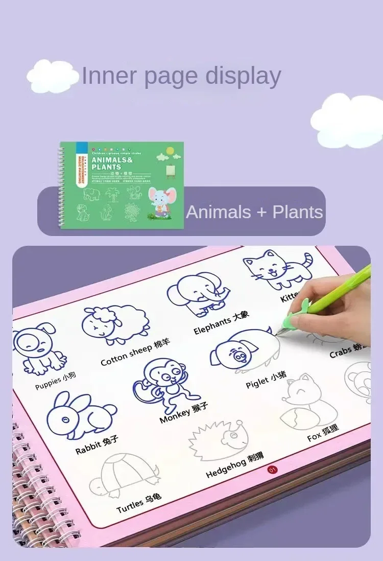 Juego de libro de rastreo de dibujo fácil para niños, cuatro temas, bolígrafo redibujable, Control, entrenamiento, cuaderno de bocetos, regalos, juguetes para niños