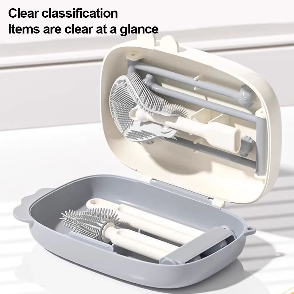 Se puede utilizar para limpiar biberones y tetinas, biberones de leche, extractores de leche, termos, hervidores, infusores de té, pajitas, etc.Paquete incluido:
