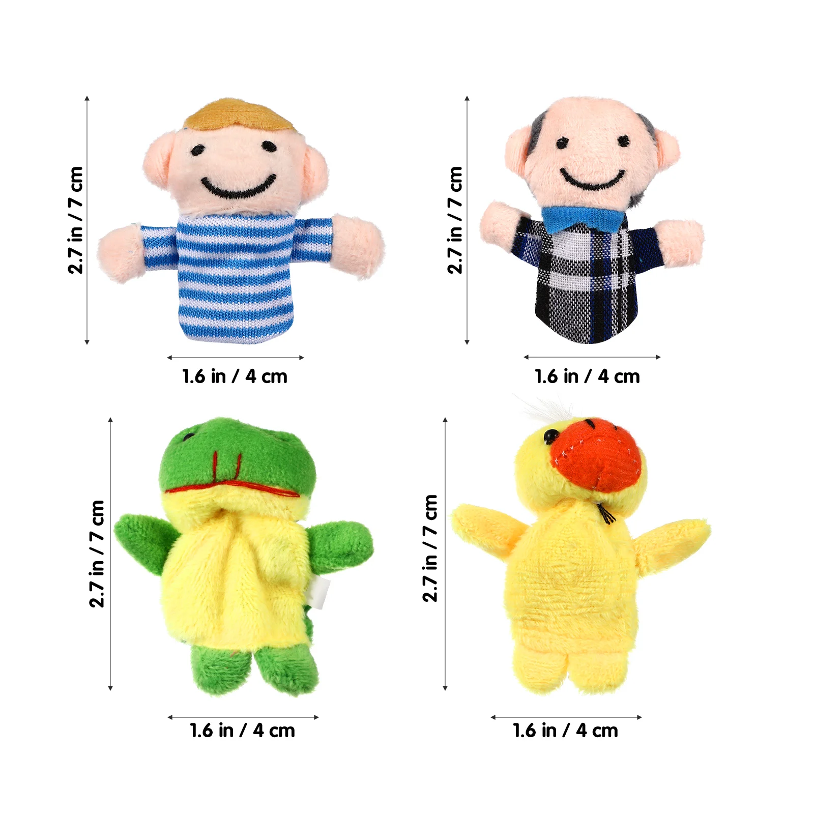 DescripciónEste artículo contiene 6 miembros de la familia y 10 títeres de dedo de animales.¡Perfecto para entretenimiento familiar, escuela, centro, escuela dominical o para aburrirse!Con su diseño compacto, puedes usarlos en tus dedos y mover los dedos. Bonitos títeres.Son los mejores accesorios para el cuento de hadas infantil.