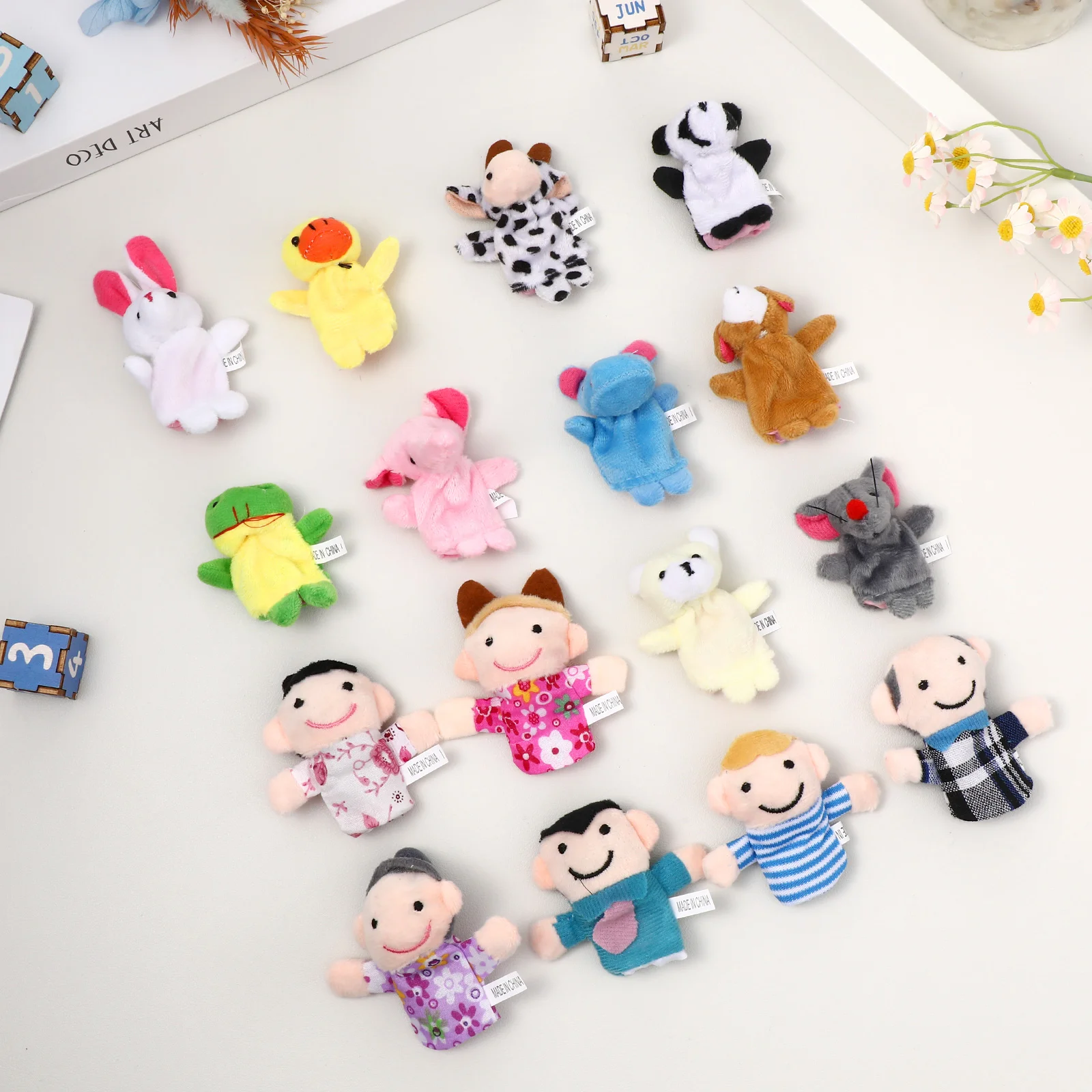 Comprar Juego de marionetas de dedo de felpa, 16 Uds., animales, familiares, niños, historia, tiempo de reproducción (patrón aleatorio)