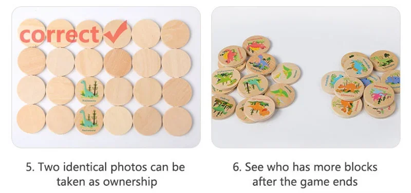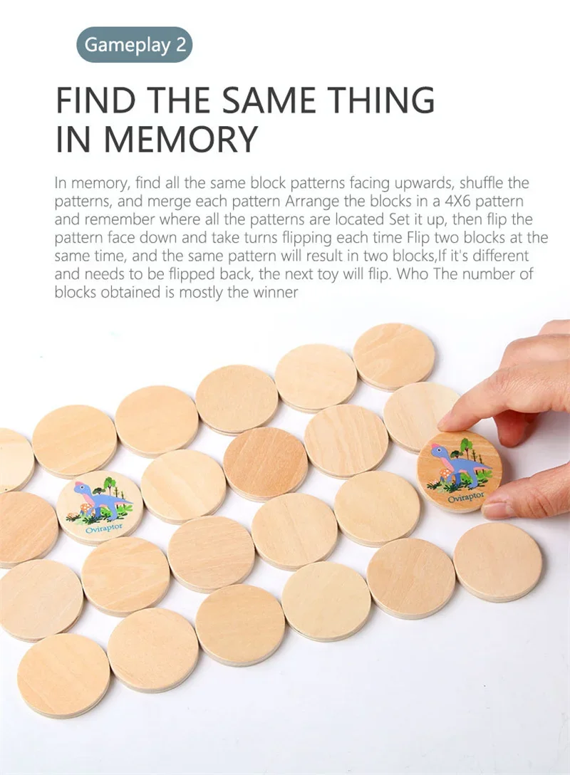 Juego de memoria de dinosaurio, juguete a juego, juego de mesa a juego preescolar para el desarrollo de aprendizaje temprano, juegos de madera, regalo de fiesta de verano