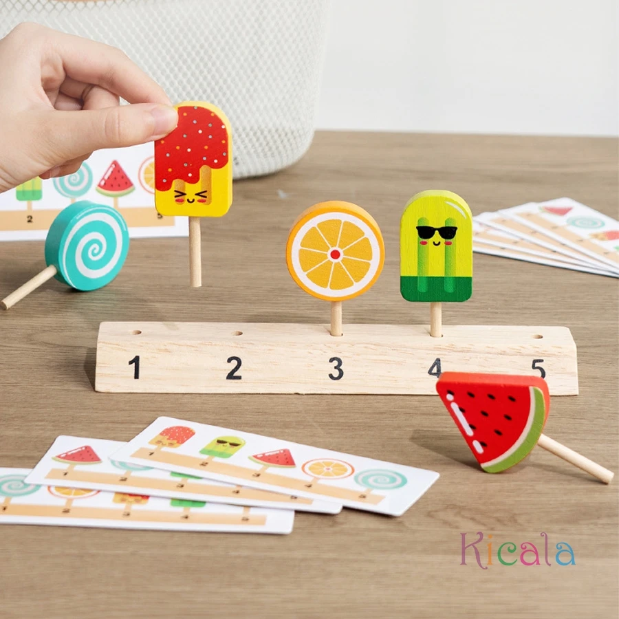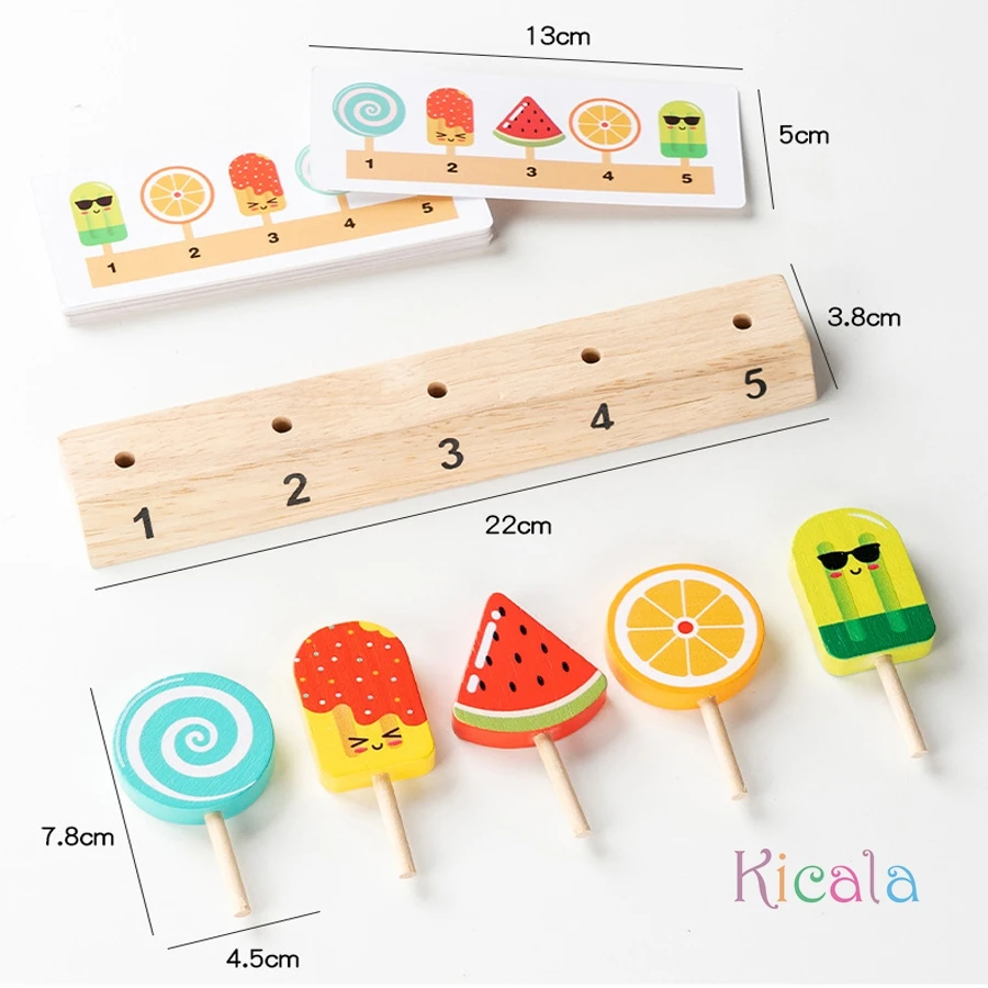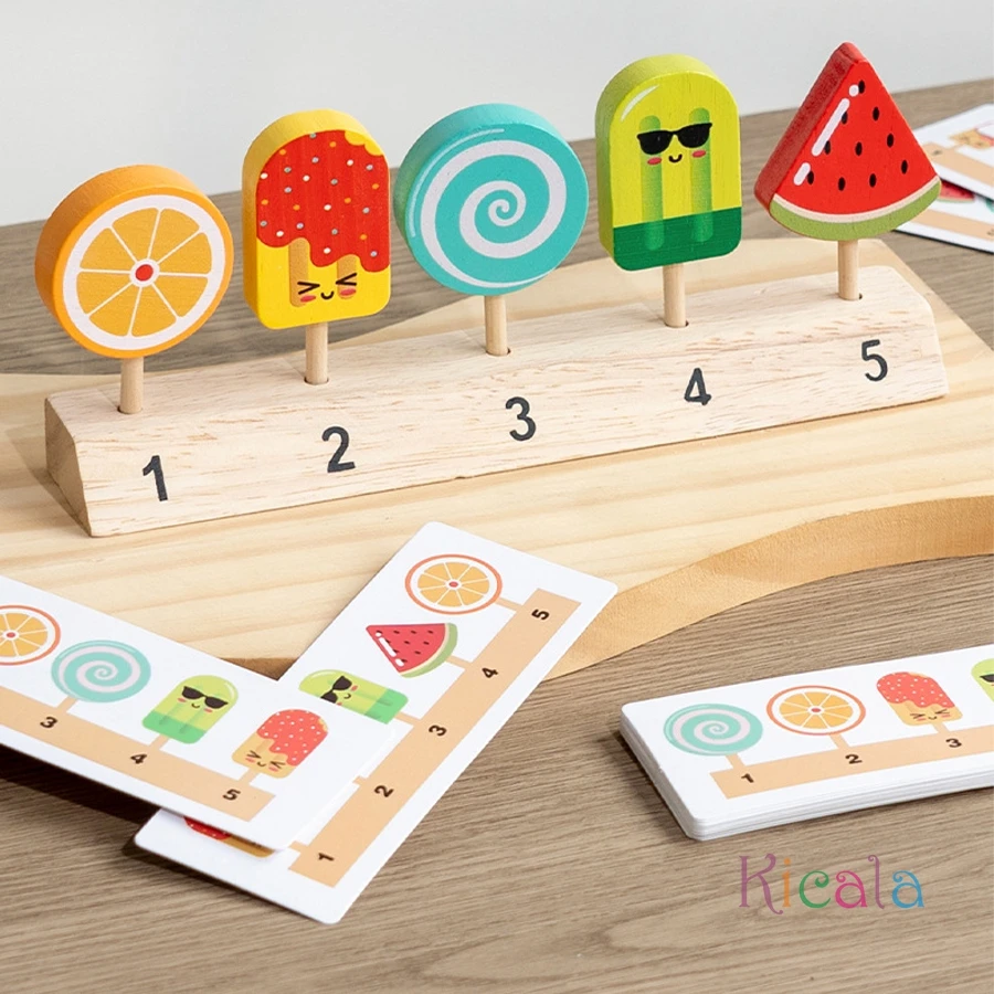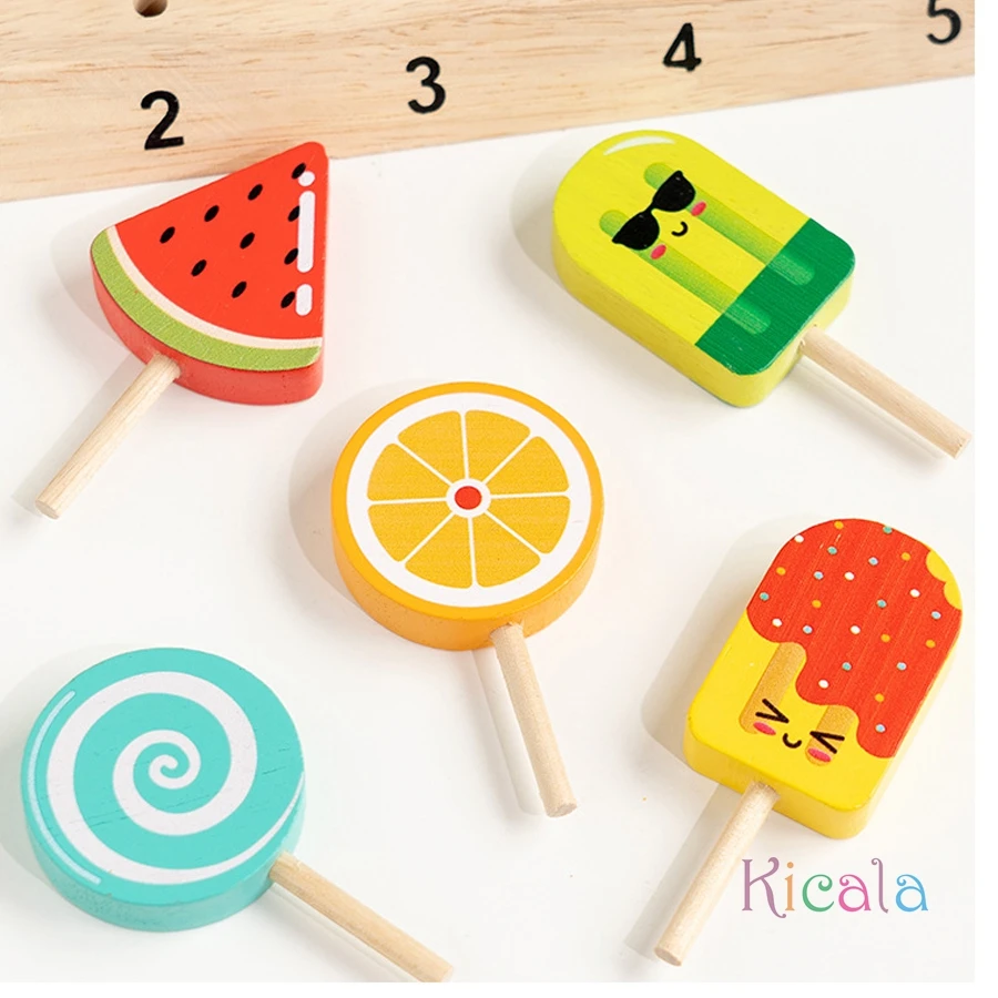 Juego de mesa de clasificación de colores con formas para niños, juguetes de madera para frutas, dulces, helado, juego a juego, entrenamiento de pensamiento lógico, juguetes de simulación de comida