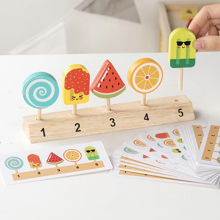 Juego de mesa de clasificación de colores con formas para niños, juguetes de madera para frutas, dulces, helado, juego a juego, entrenamiento de pensamiento lógico, juguetes de simulación de comida