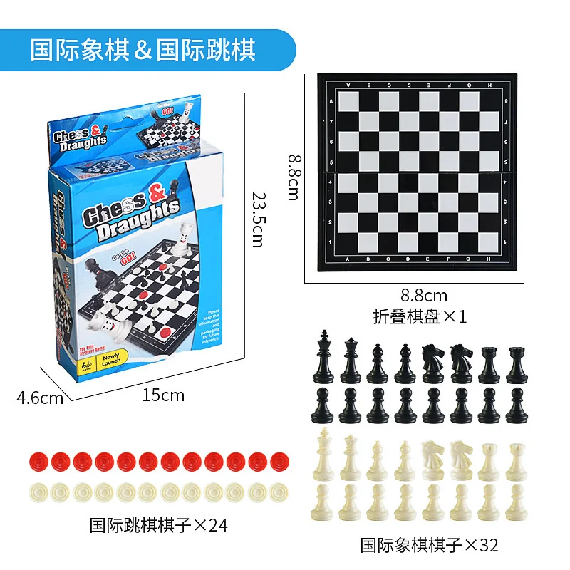 Juego de mesa plegable dos en uno, tablero de ajedrez Internacional, juegos de mesa competitivos portátiles, juguetes para reuniones de fiesta multijugador