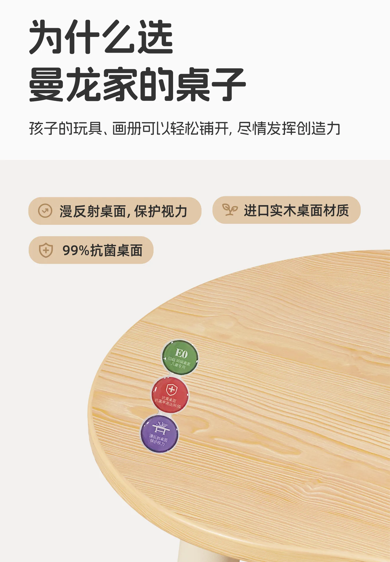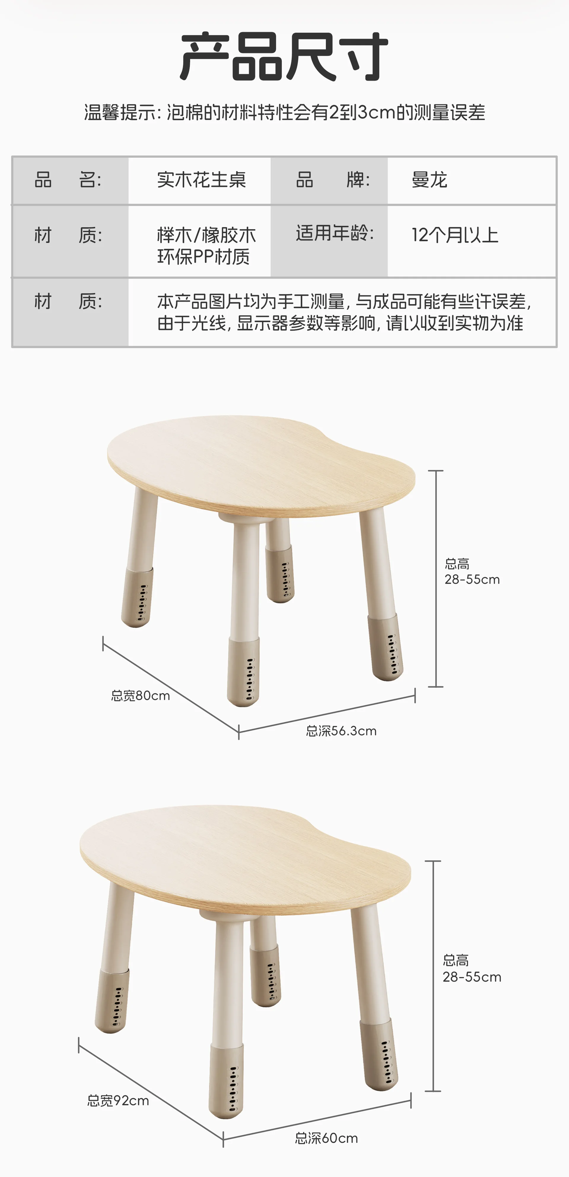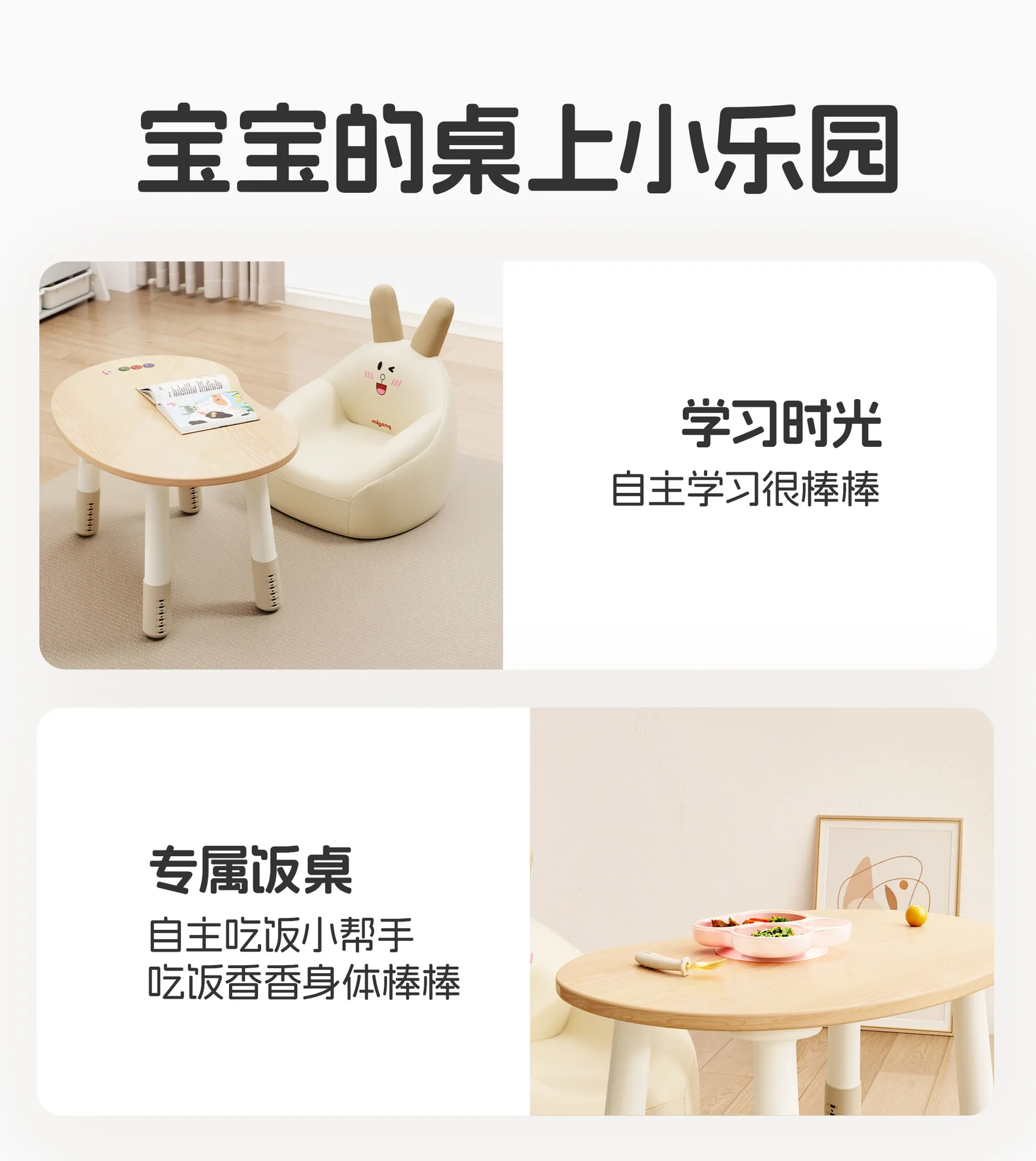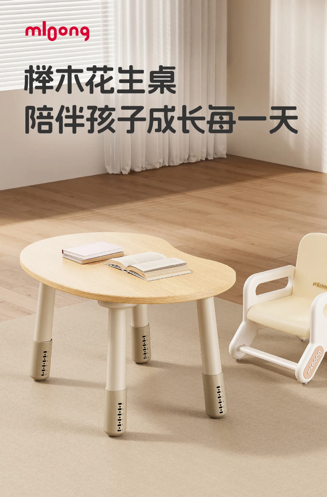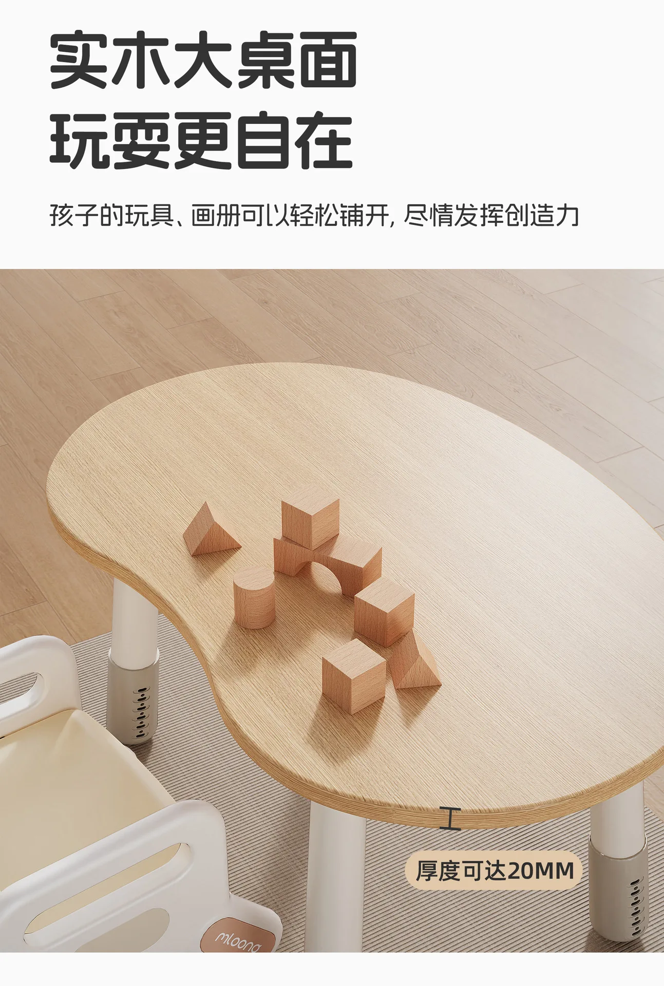 Juego de mesa y sillas de aprendizaje ajustables para niños, escritorio estilo maní de madera de haya, 28-55 cm de altura, superficie antideslumbrante, acabado en cera vegetal