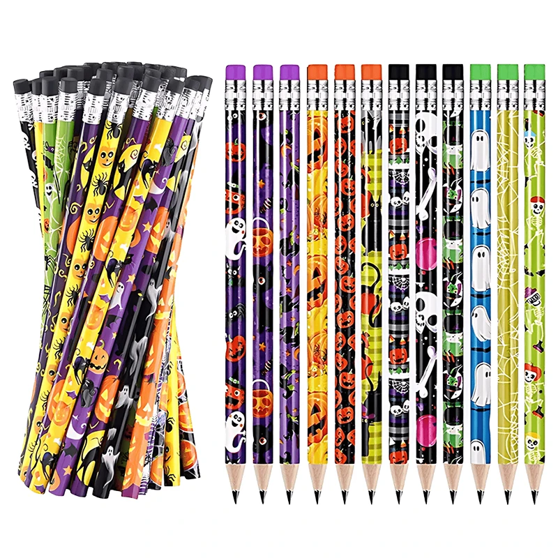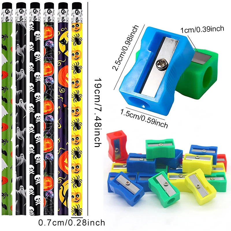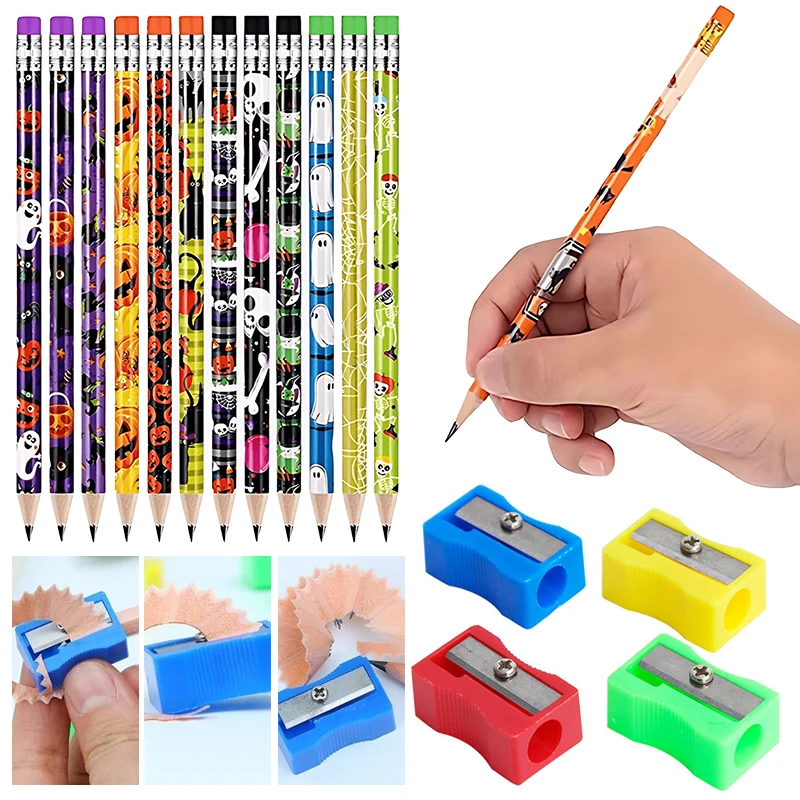 Comprar Juego de papelería con temática de Halloween, 24 Uds., lápices HB, sacapuntas manuales de un solo orificio, papelería bonita, regalo, suministros escolares de oficina ZYF